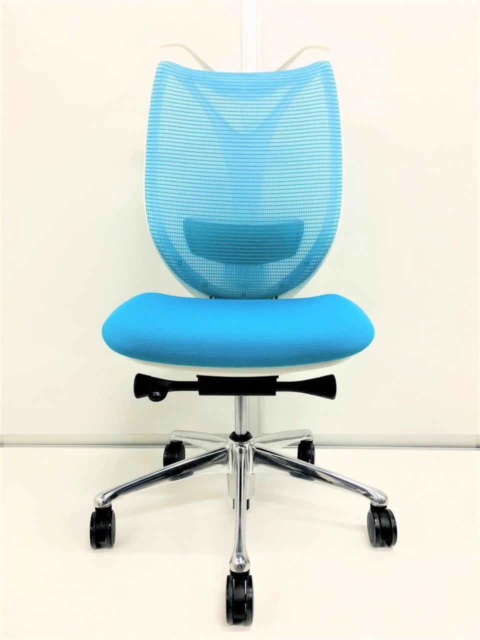 【在庫2点!】オカムラ製 サブリナチェア ブルー×ホワイトカラー 肘無しハイバック【人気商品】【爽やかなブルー】【国内メーカー】