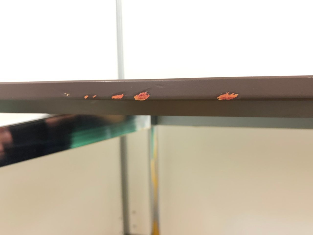 - 壊れている天板歪み、アジャスター無し、キャスター使用不可のようにそのテーブルの本来の効用を果たすための機能に不具合がある。