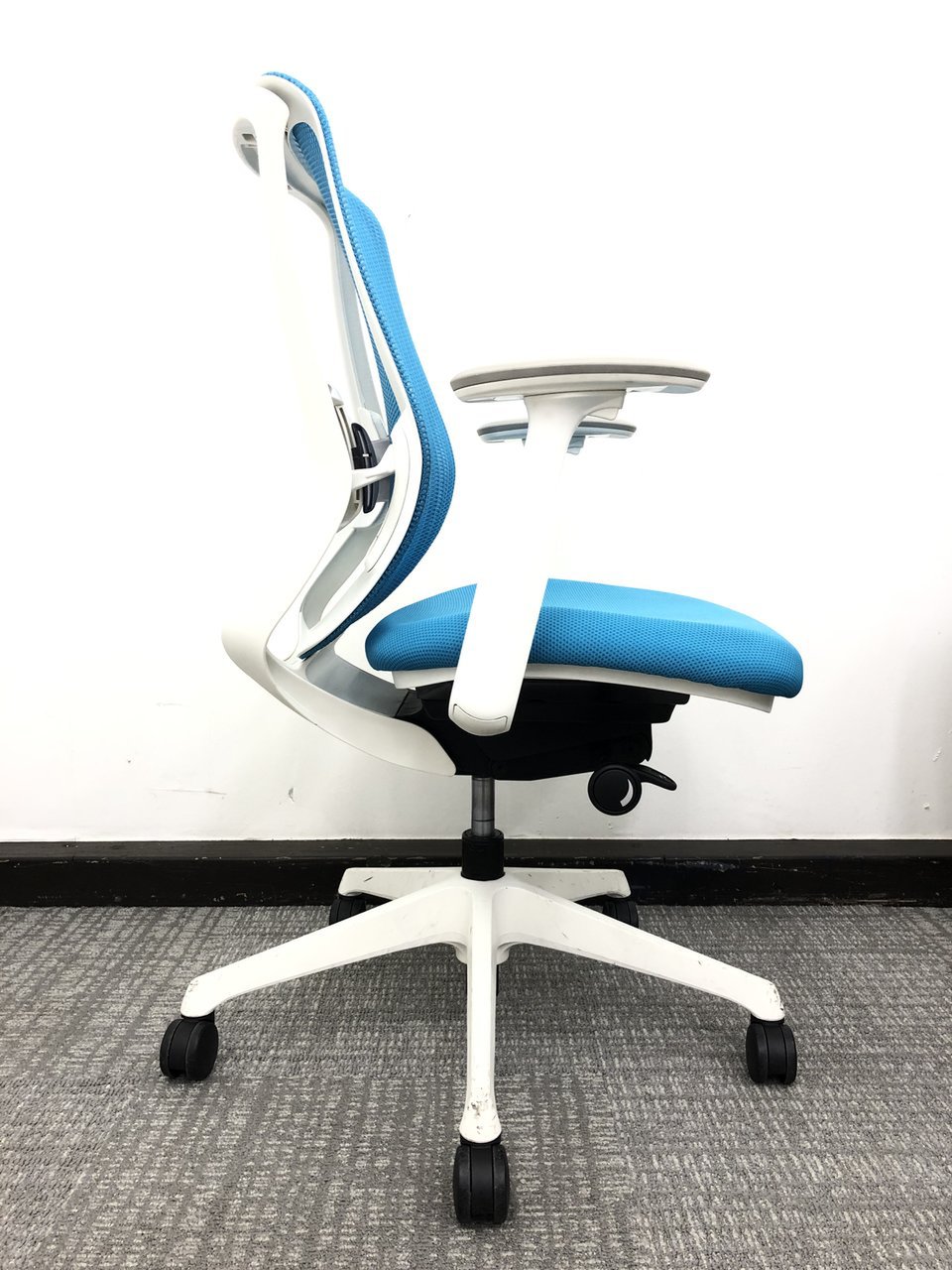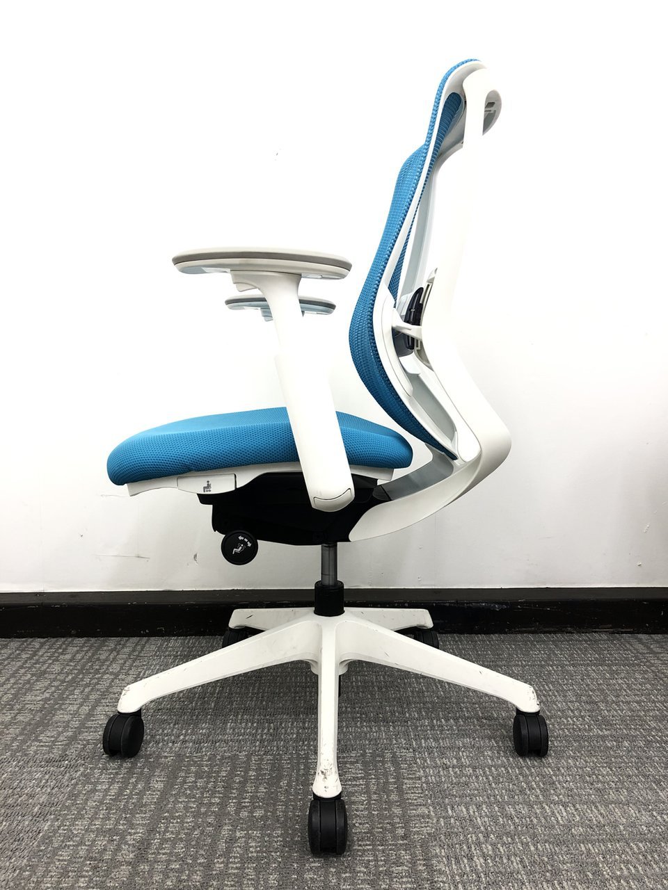 ホワイトフレーム×ブルーグリーン★状態良好品★アジャストアーム★ハイバック★オカムラ★シルフィー