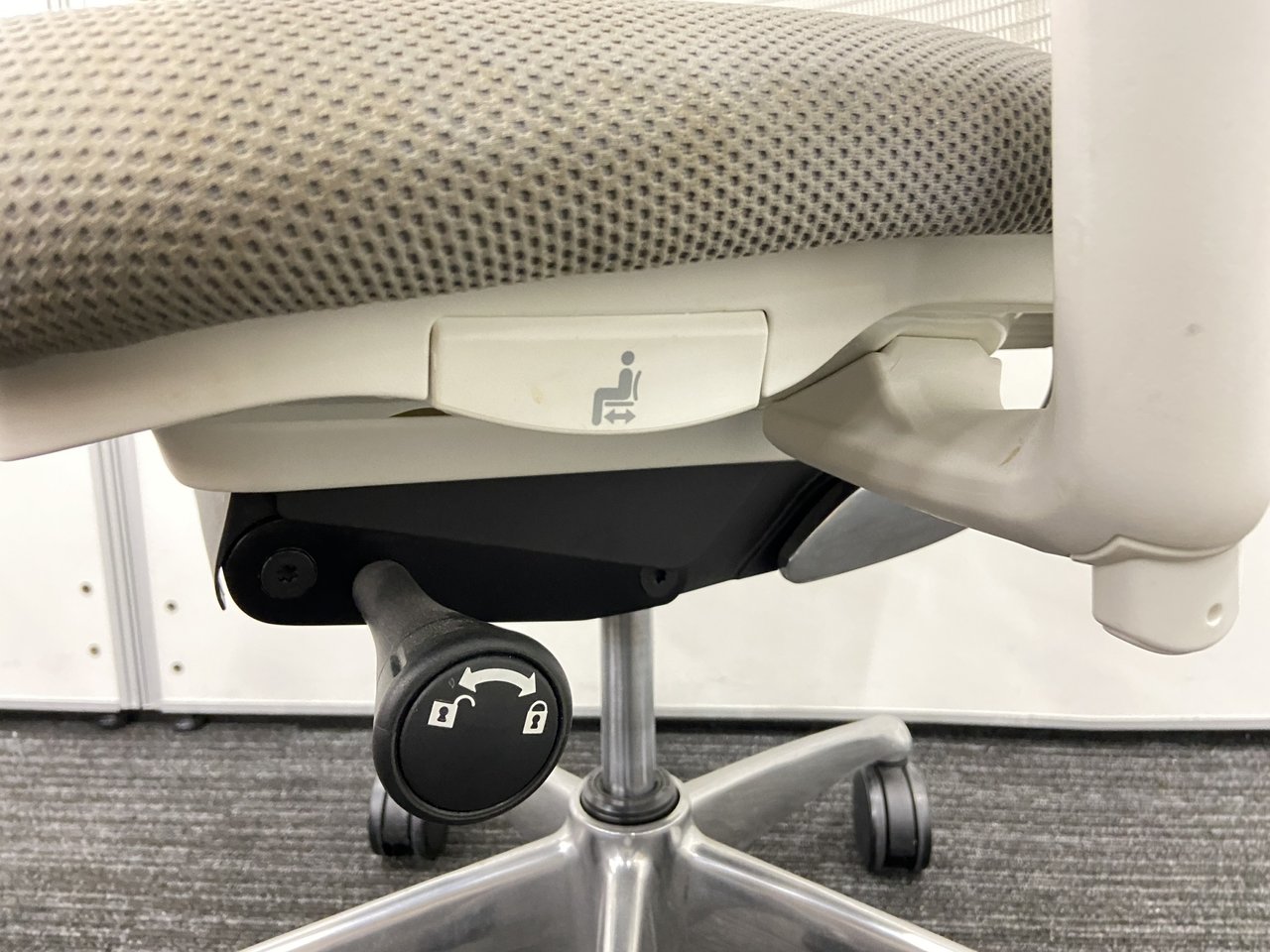 - 座面右下のレバーをスライドさせる「クイックスライドオペレーション」で、リクライニング反力を調整できます。強さの状態が視覚的にわかるため、直感的に操作がおこなえます。