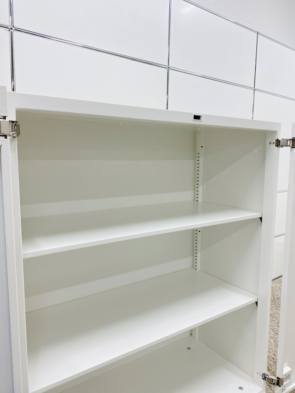【定価約9万円!!マルチアクセスハンドルで開閉がラクラクです!!ホワイトカラー両開き書庫!!オシャレな天板付き!!】■オカムラ■レクトライン