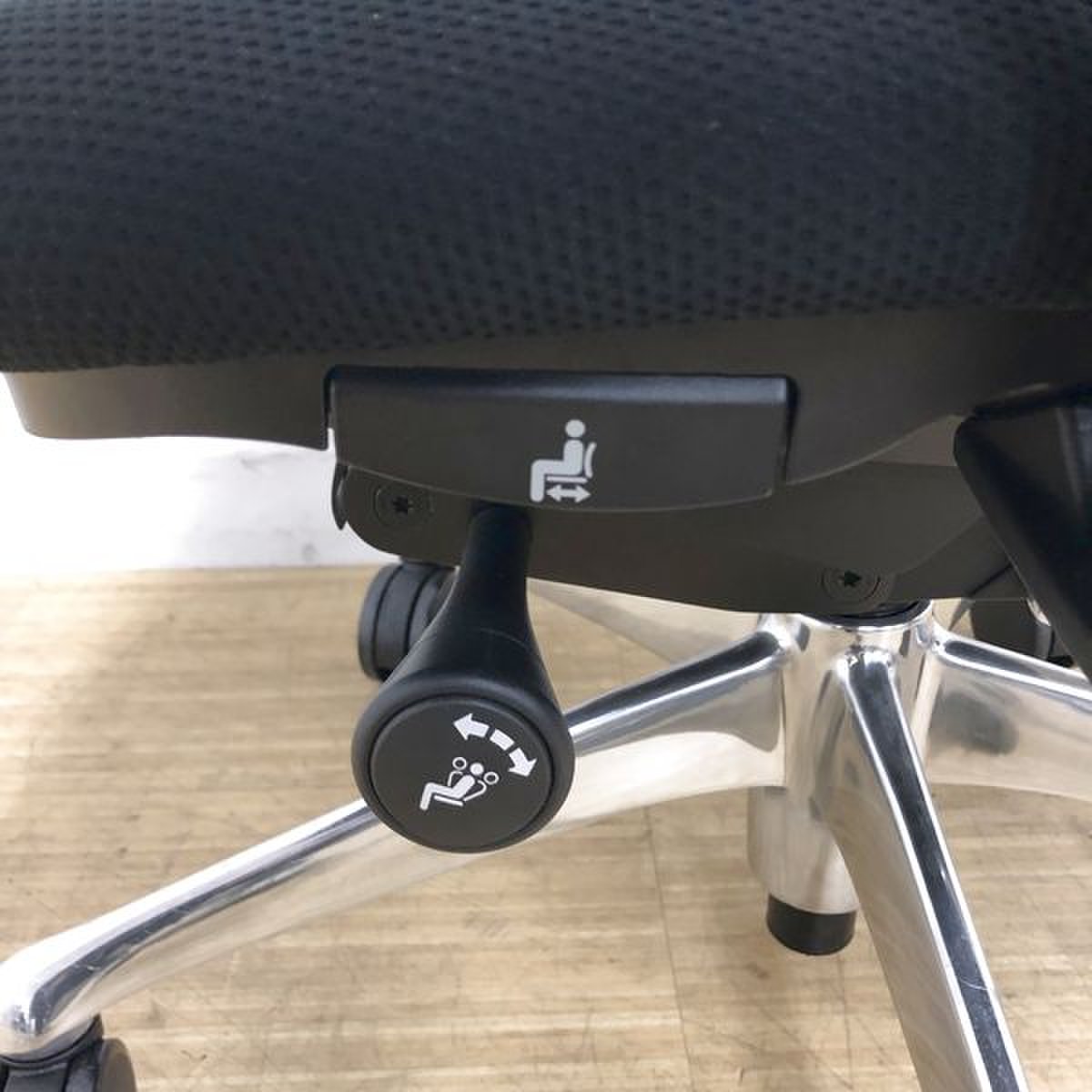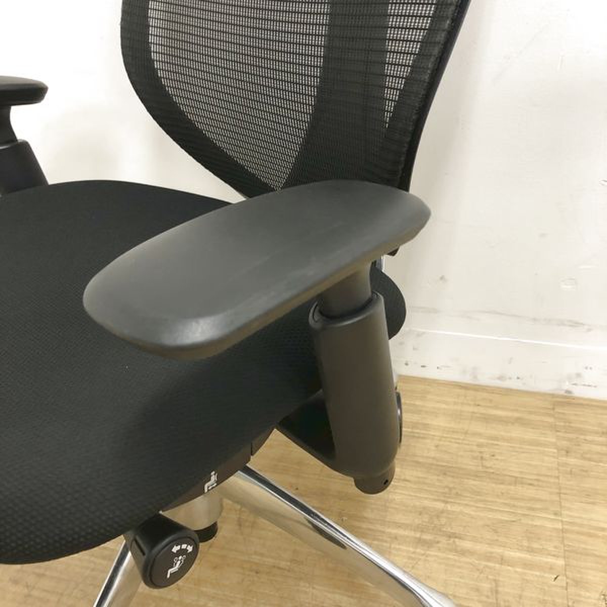 上下昇降不可のため!!オカムラ サブリナ が安く! 前傾機能付き アジャストアーム搭載 ※メッシュ少し亀裂あり- 名古屋千種店