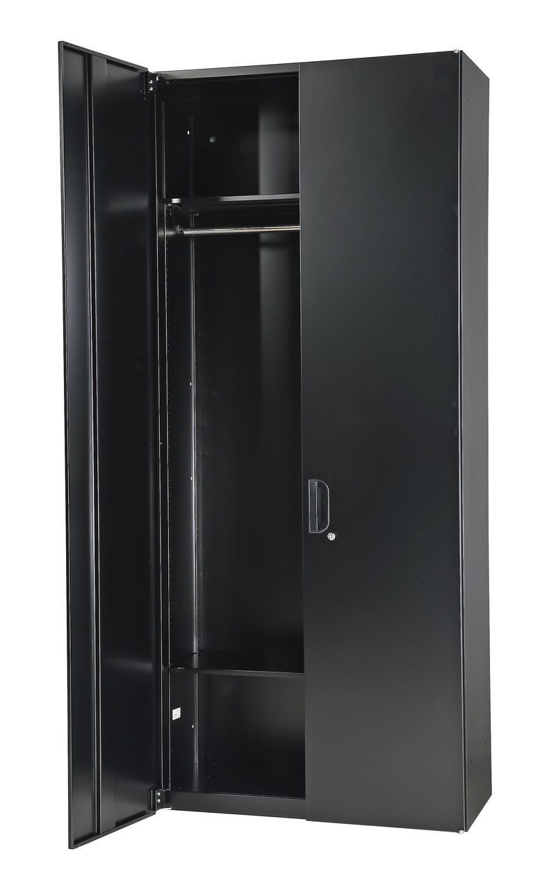 【収納家具】高さ2100mm/両開きワードローブ【事務用品】【ブラック】- 全店共通商品