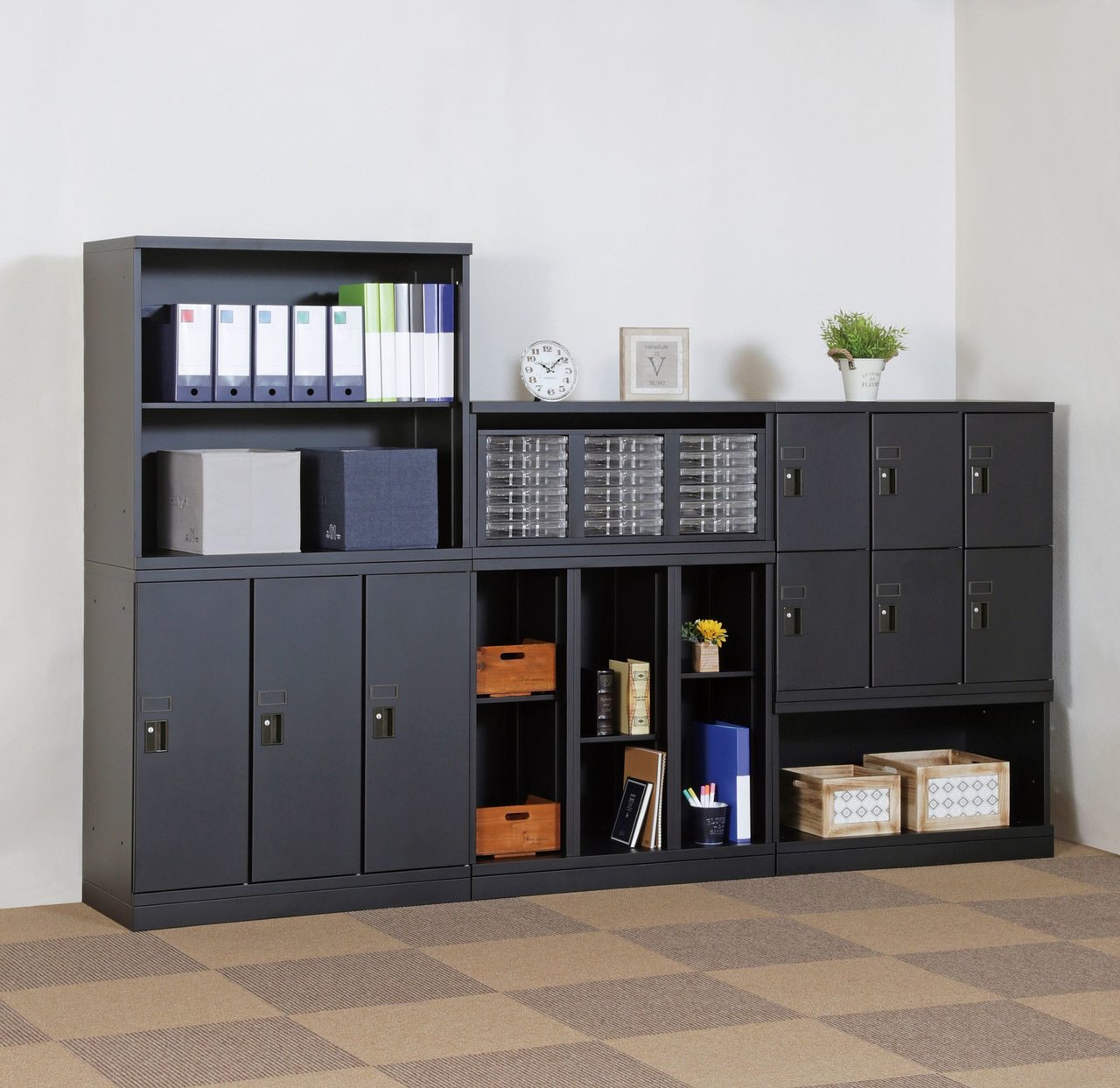 【収納家具】 コンビネーション収納/3列オープン書庫【事務用品】【ブラック】- 全店共通商品