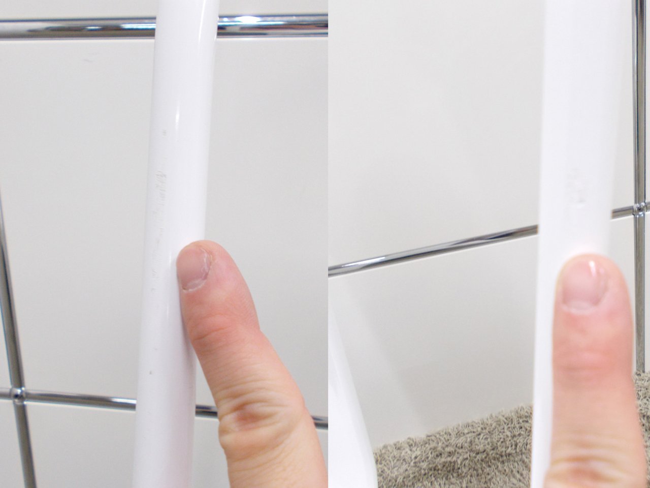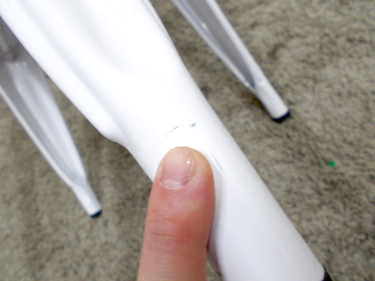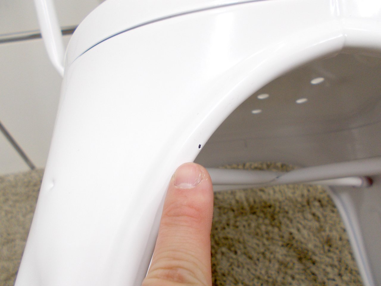 - かなり強い濃い黄ばみ・変色が商品全体にある。(例、座面・背もたれ、脚部等にある。)