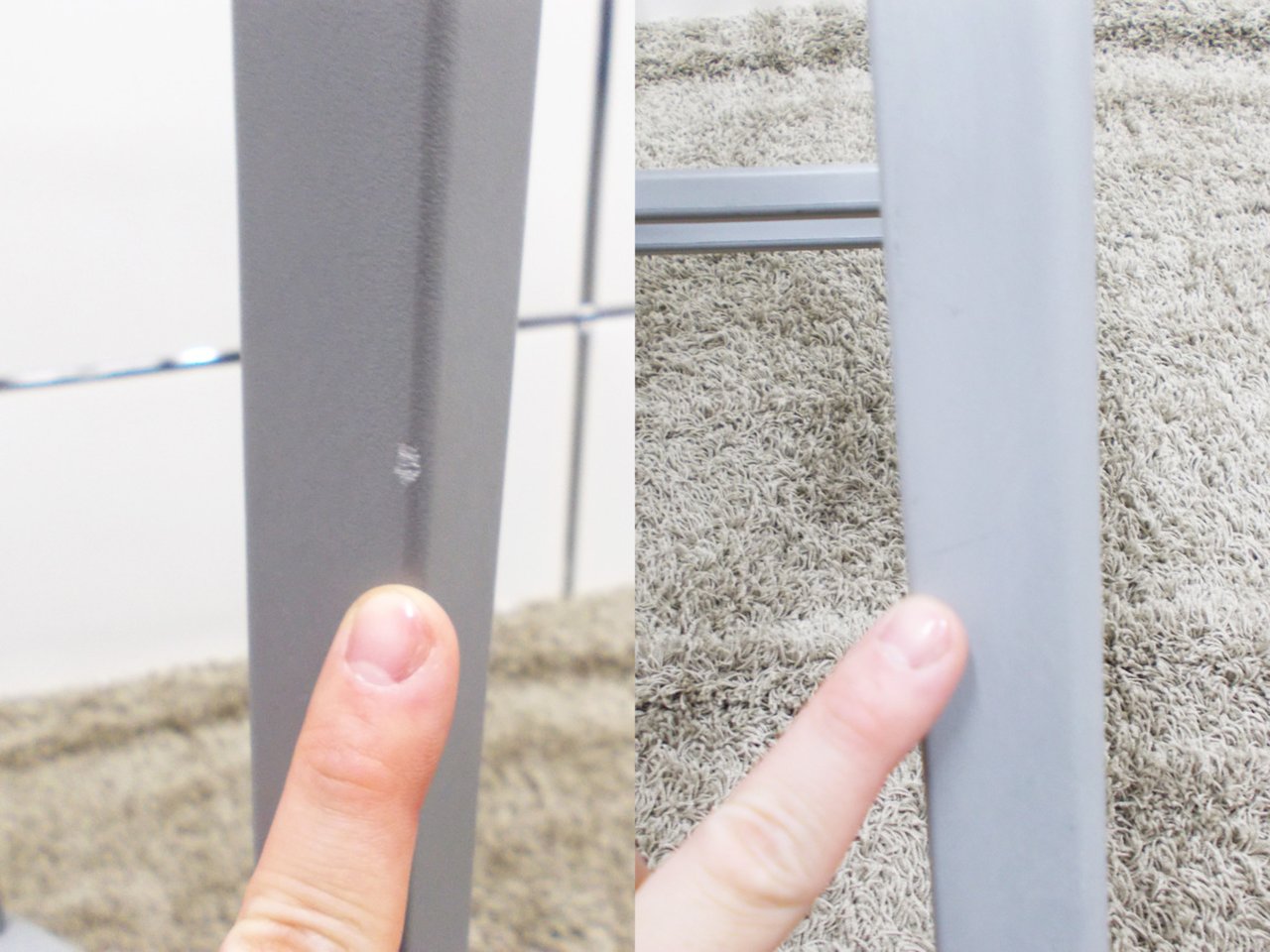 - あり黄ばみ・変色が広い範囲にうっすらある、または濃い黄ばみ・変色が一部ある。(例、座面・背もたれ、脚部等にある。)