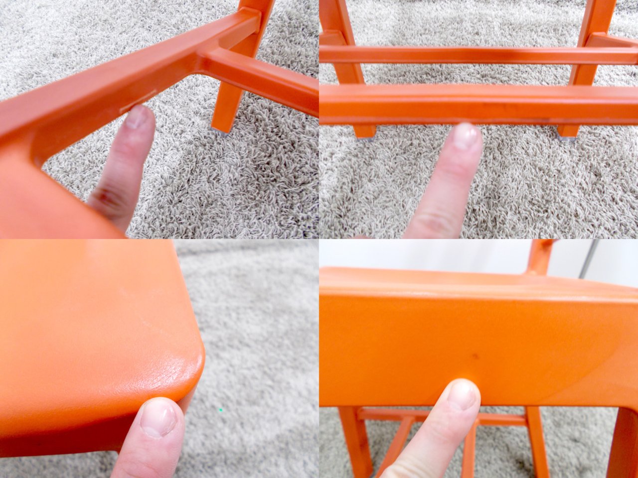 - 目立つ箇所あり傷・破れ・ほつれ・へたり・しわが多数または深い傷・破れ・ほつれ・へたり・しわが一部ある。※座面・背もたれ、シェル、脚部等にある。