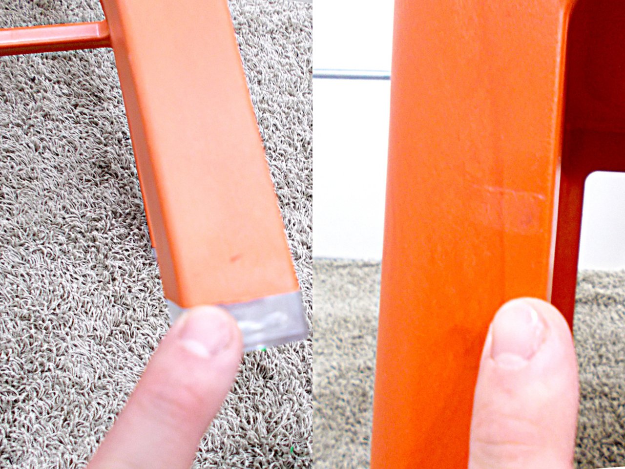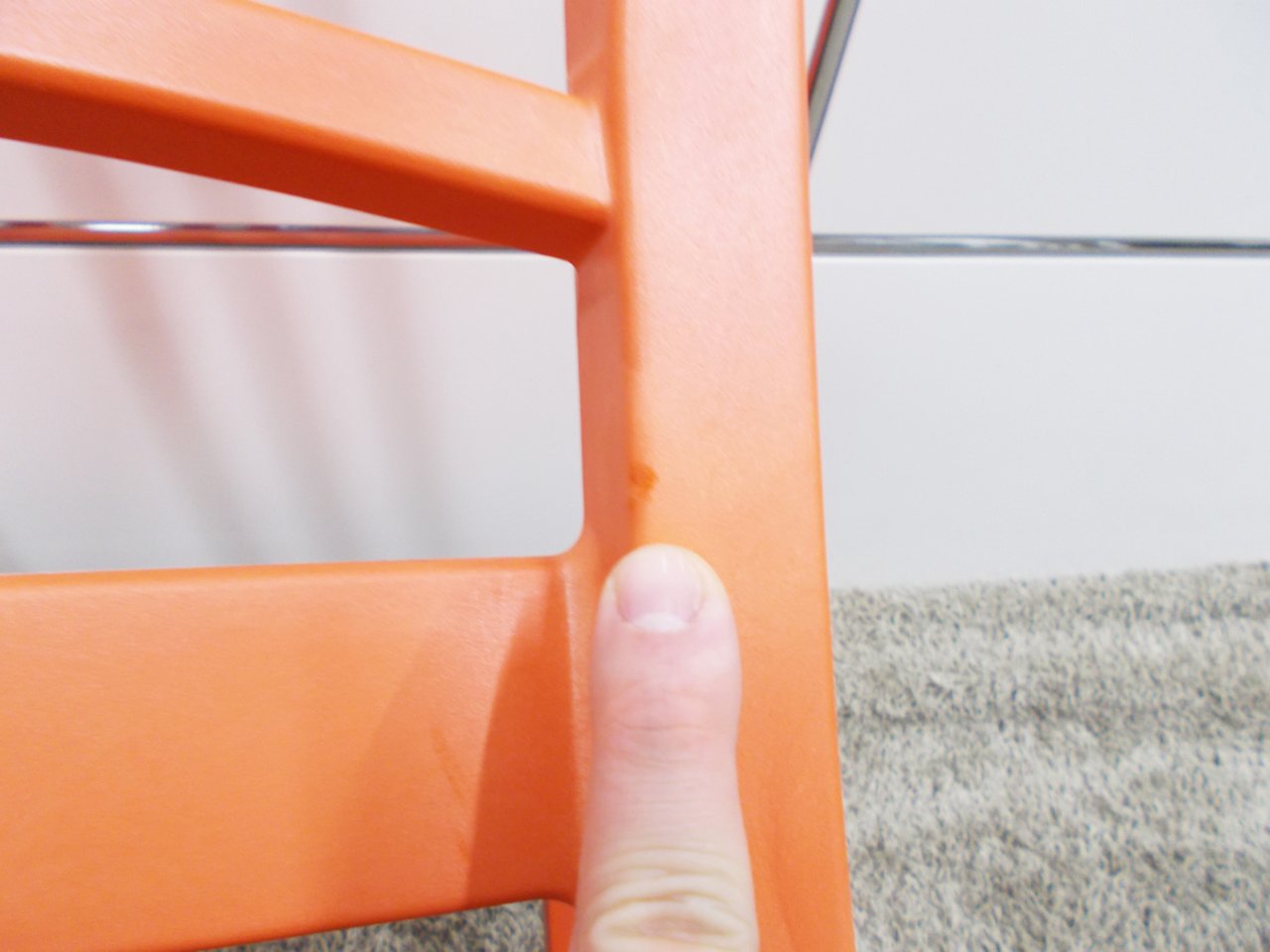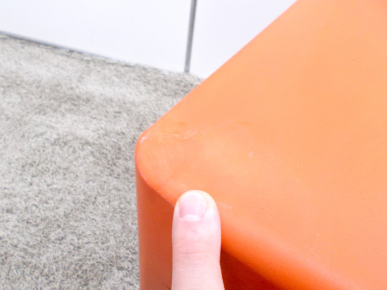- かなり強い濃い黄ばみ・変色が商品全体にある。(例、座面・背もたれ、脚部等にある。)