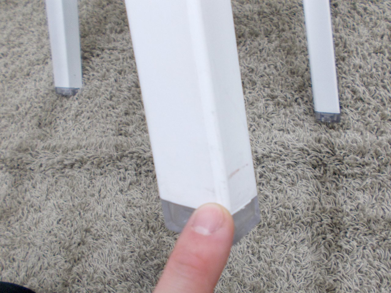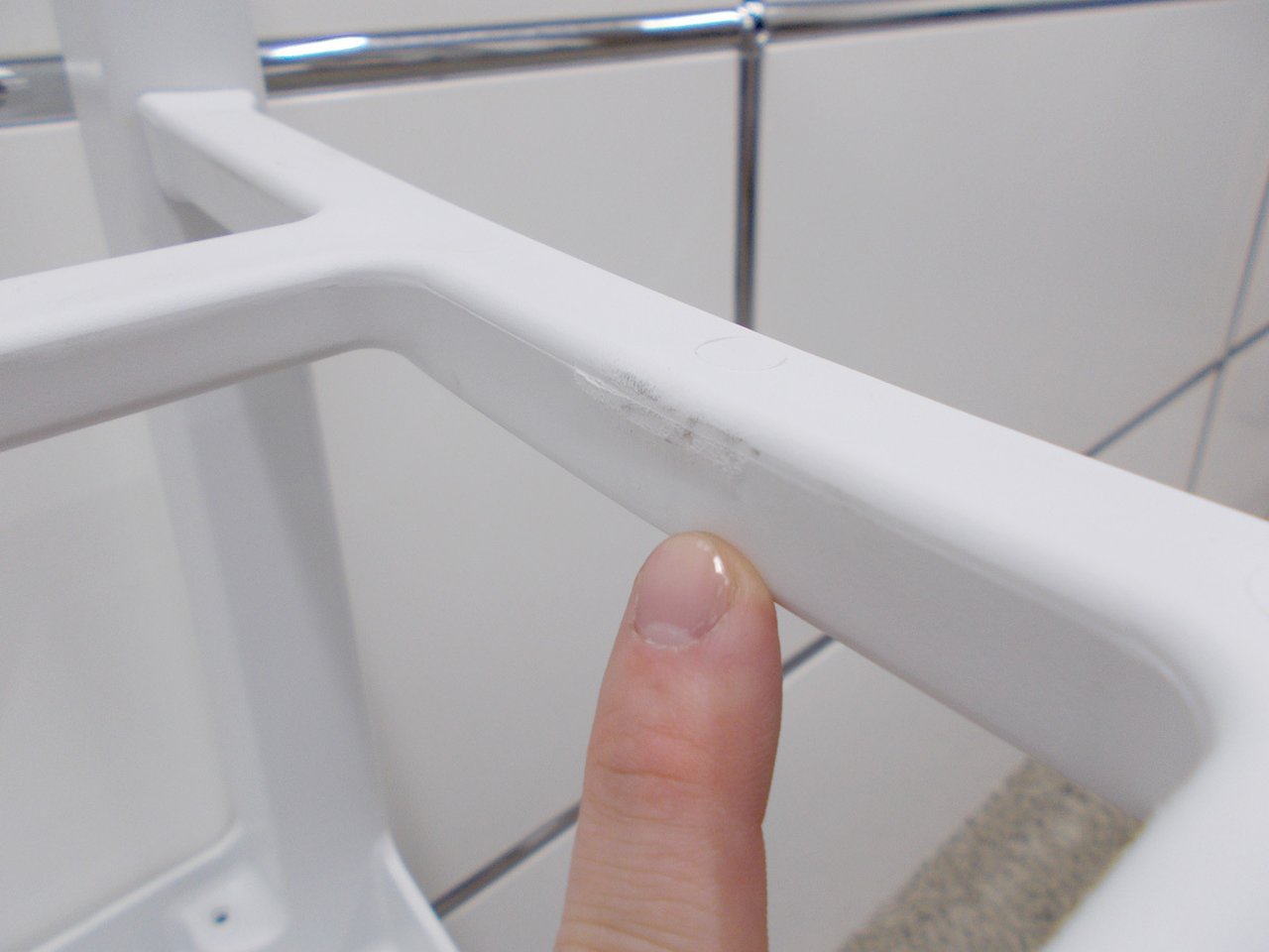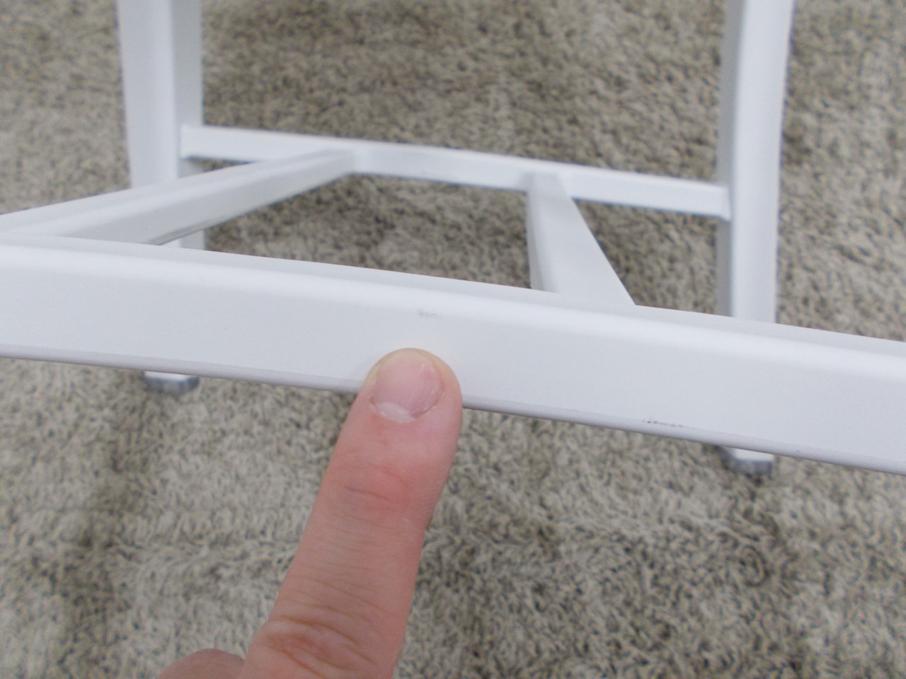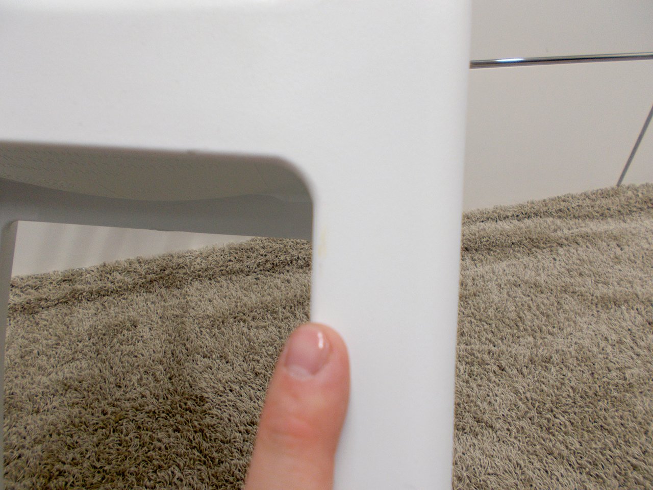 - かなり強い濃い黄ばみ・変色が商品全体にある。(例、座面・背もたれ、脚部等にある。)