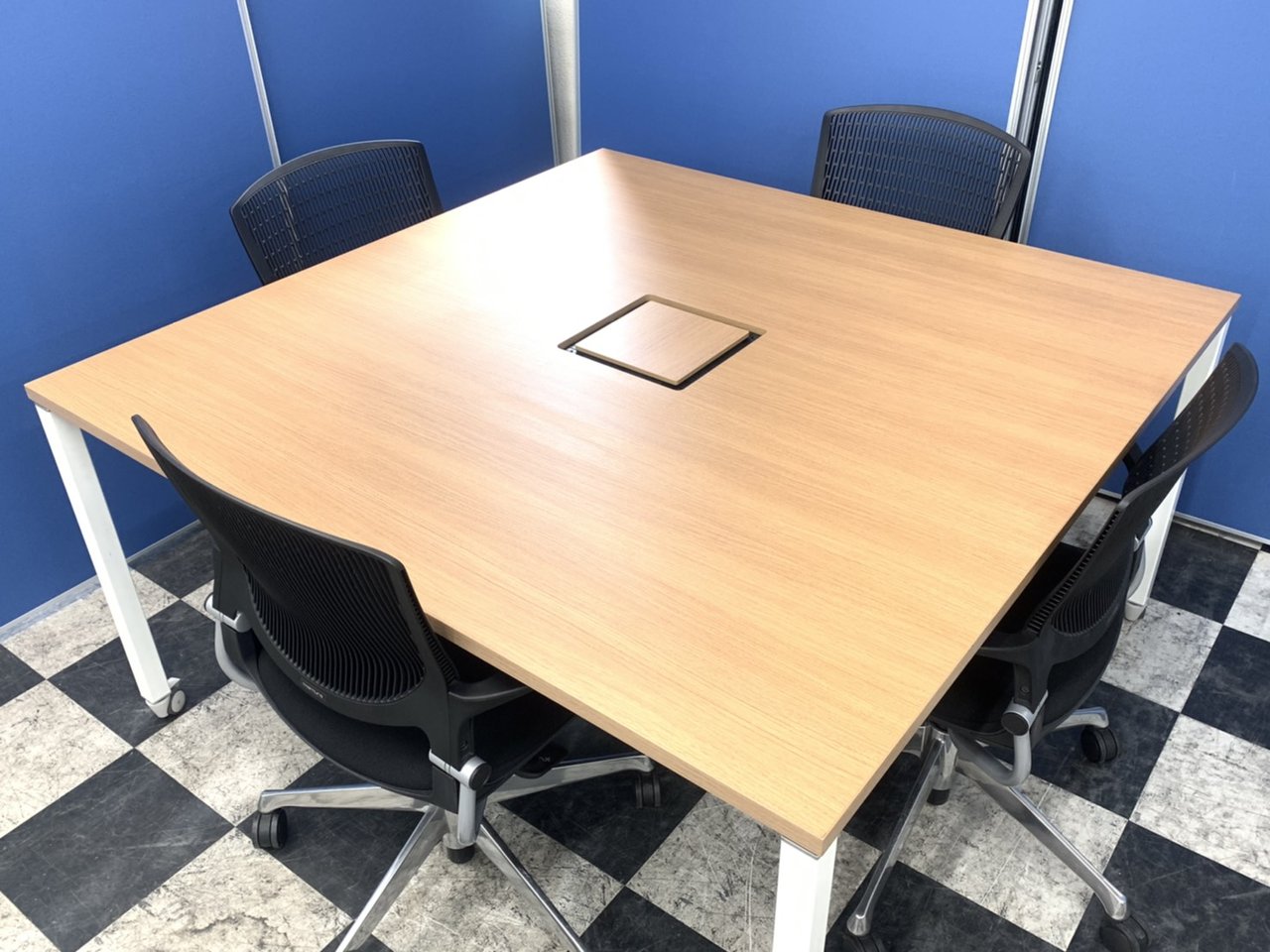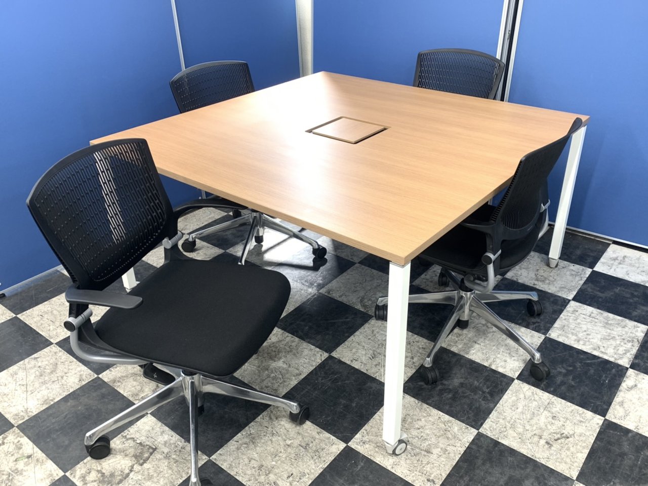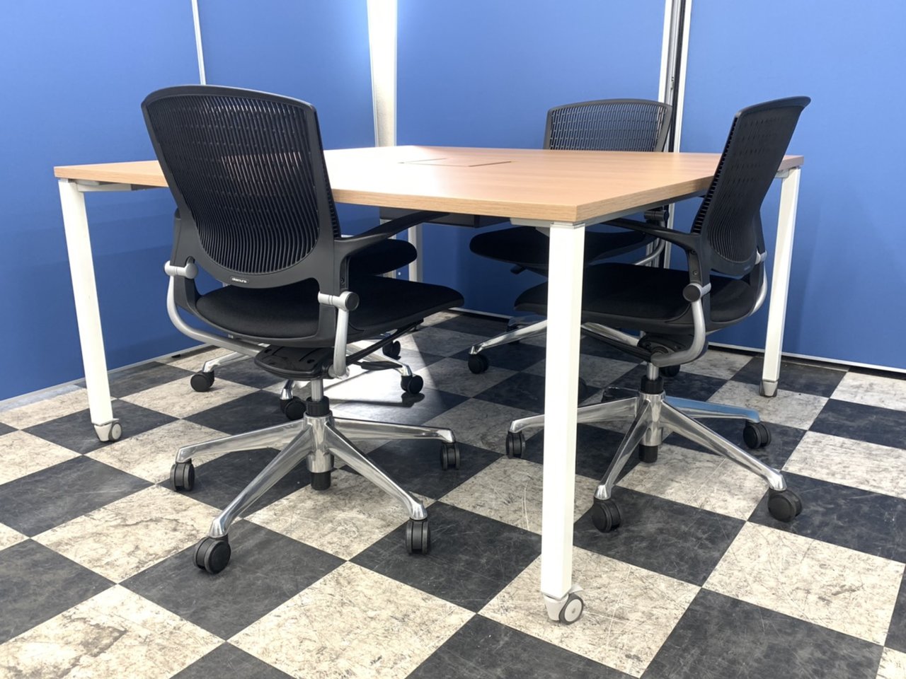 オカムラ製アプションフリーテーブルと、オカムラ製グラータチェア×4脚の高品質ミーティングセット。