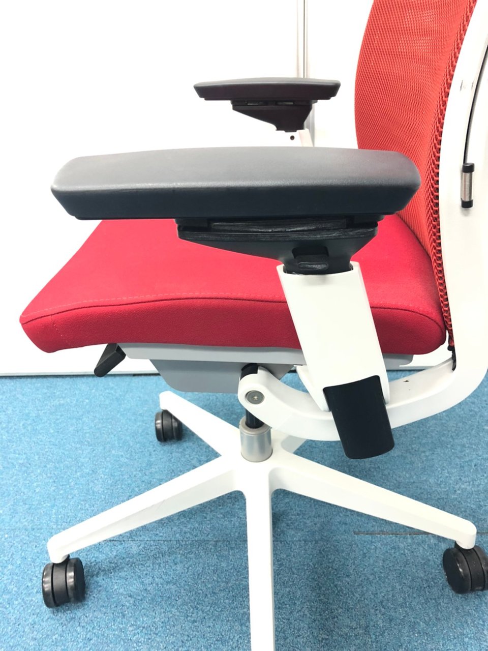 快適な座り心地に不可欠な調節機能である、上下昇降、座面の奥行き調整、リクライニングなどを備えており、操作もわかりやすく好評です。 特に、座面の奥行きは、座面下の左右に通った細いバーで調整でき、座ったままで軽やかに滑るように調整が可能です。 価格面では、新品では高めですが、中古は流通も多く、定価の3割前後の価格で高級チェアの座り心地を手に入れることができます!