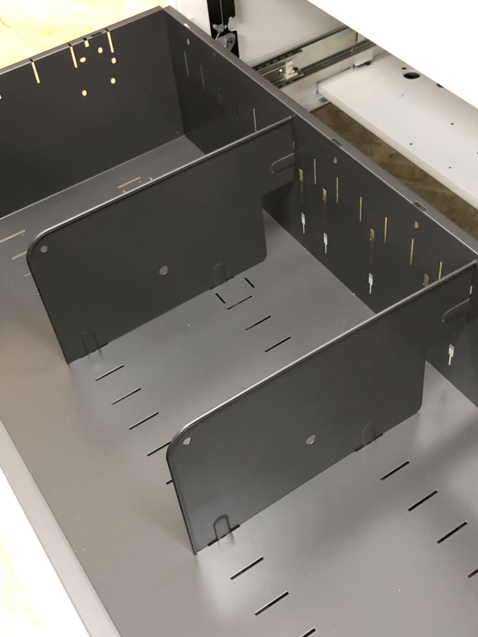 - 完備ベース、連結ビス、仕切り板が完備されている。