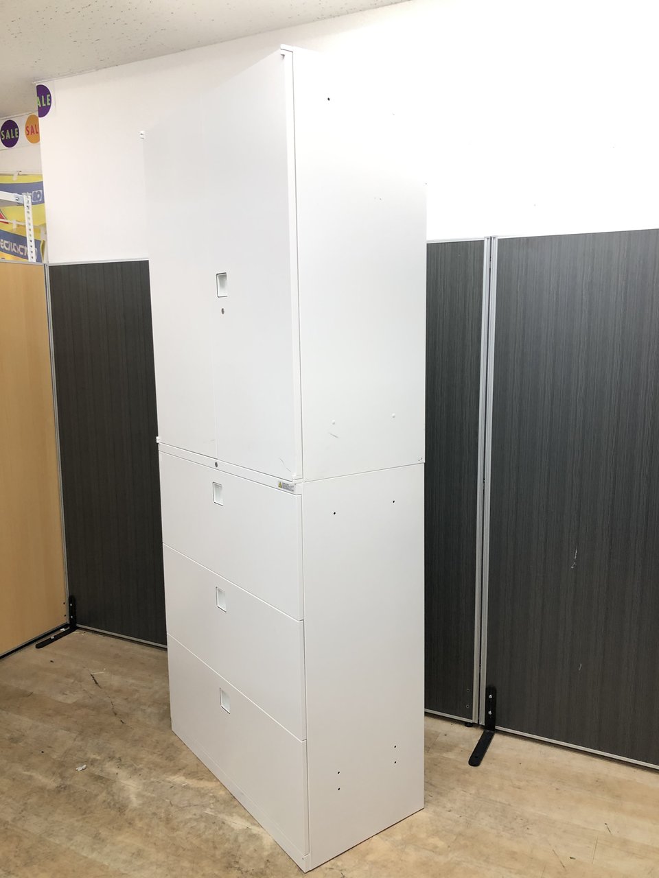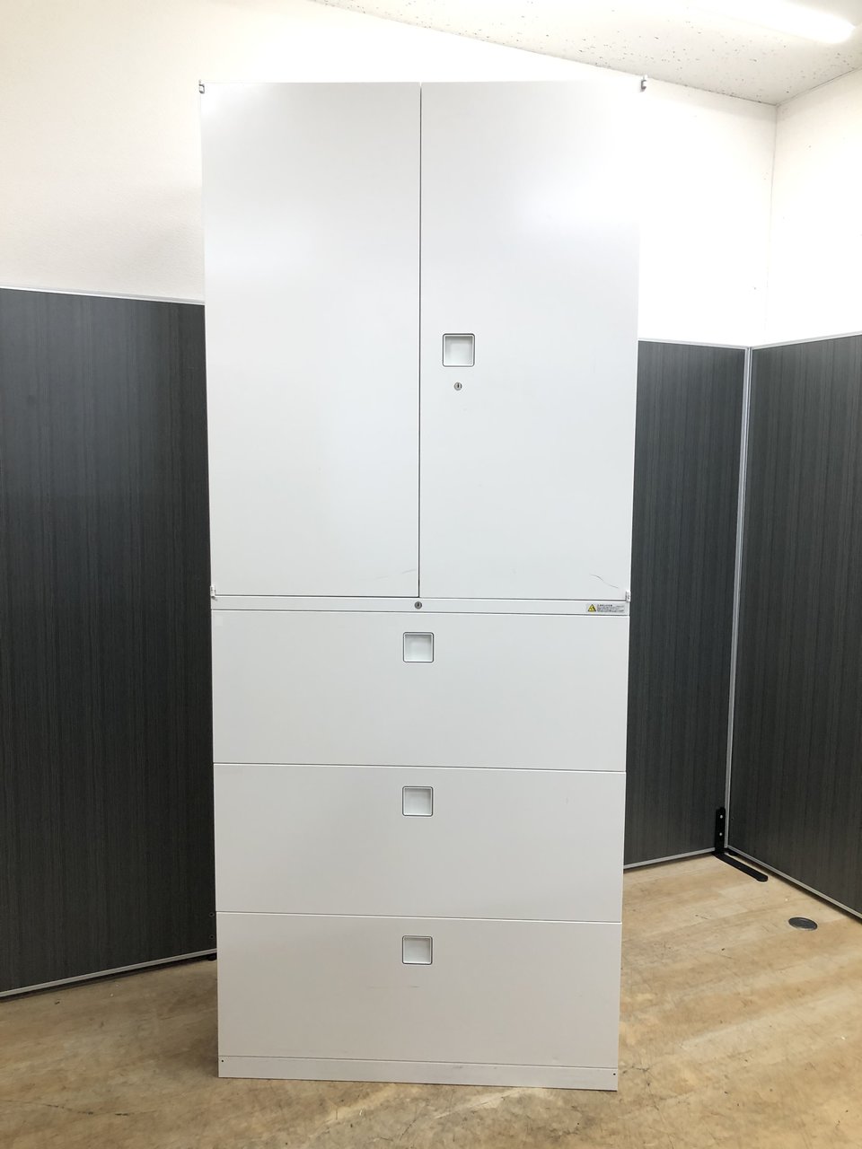 【上下書庫セット】【両開き(上)×3段ラテラル(下)】【オカムラ】【レクトライン】【ホワイト】【4台】