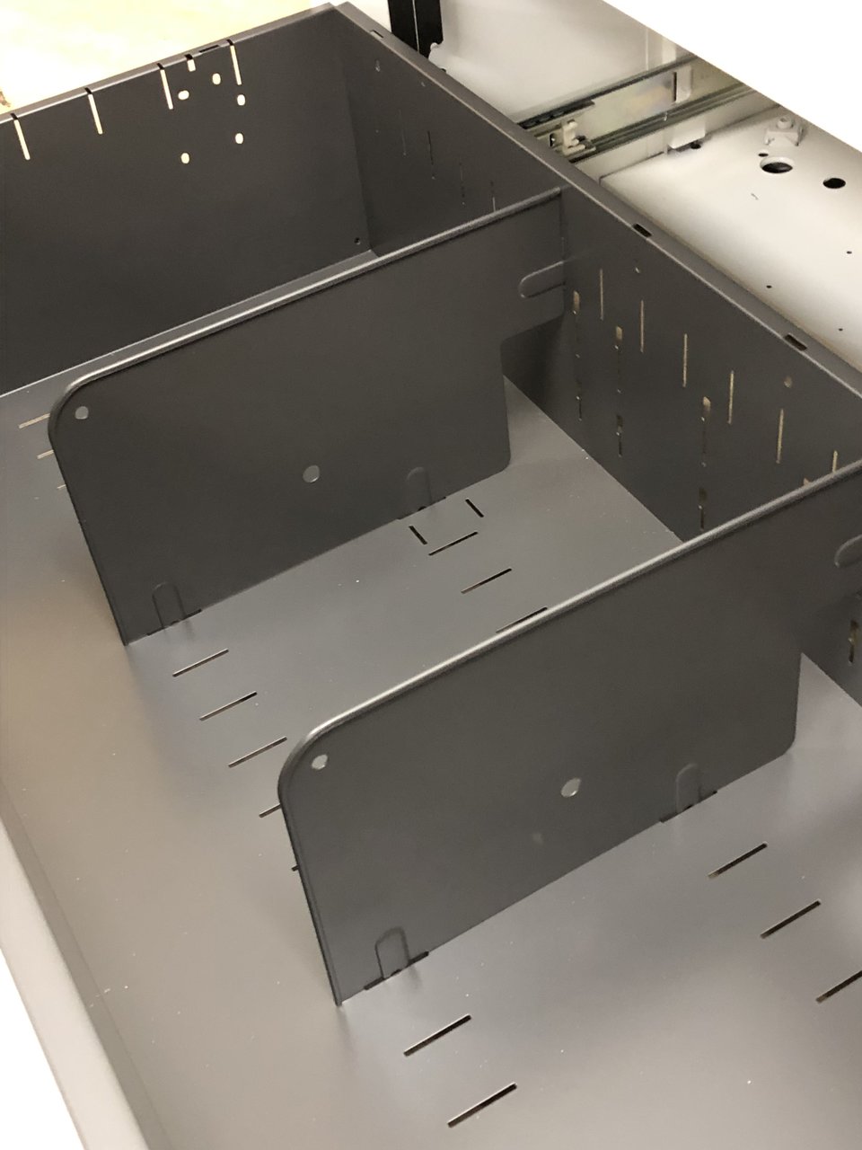 - 完備ベース、連結ビス、仕切り板が完備されている。