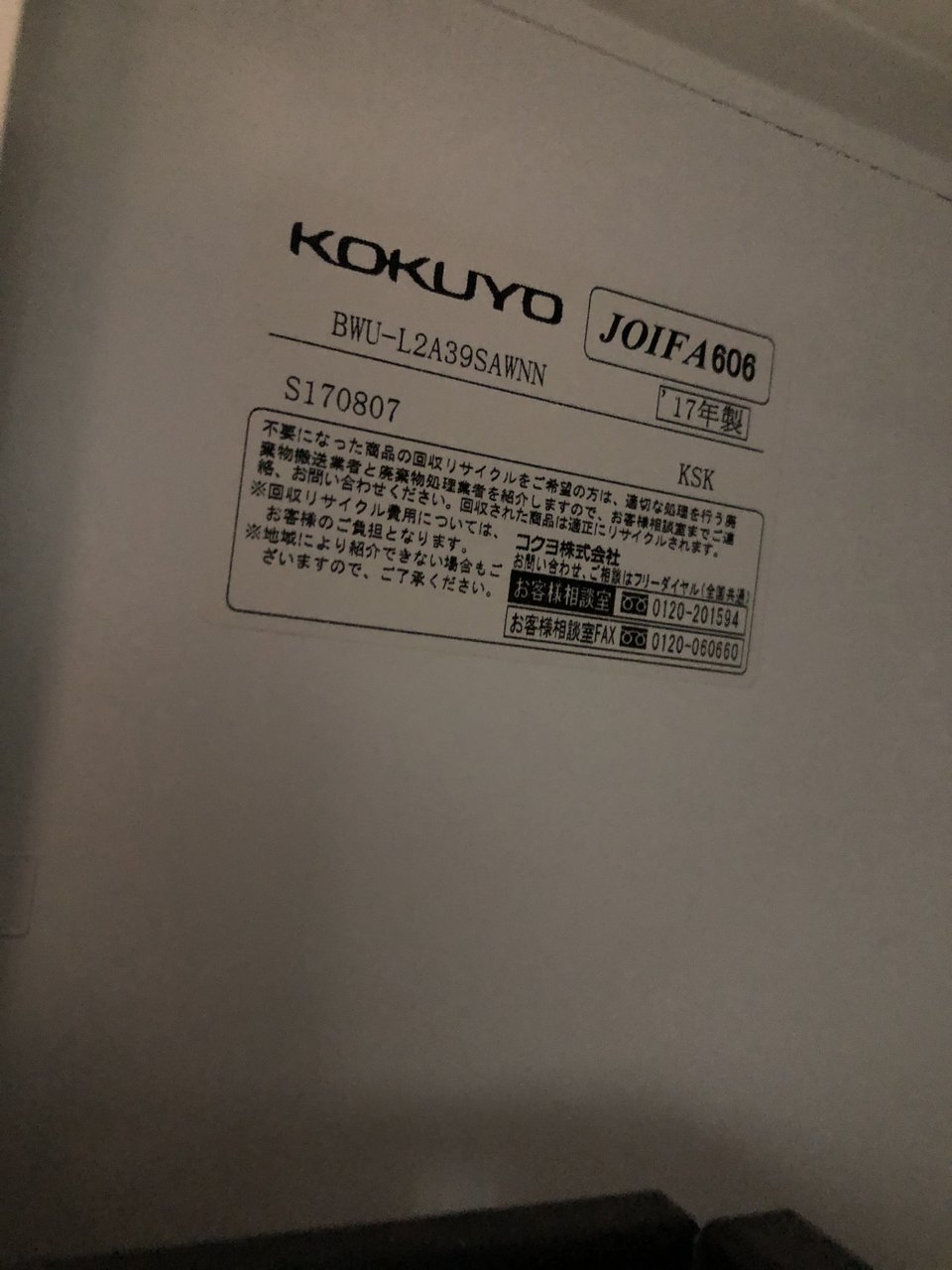 - 一部不具合ありそ引出の開閉不可、施錠不可、棚板無しといったの書庫の本来の効用を果たすための機能以外の一部が使用不可(例、扉、引出の開閉がしづらいなどがある。 )