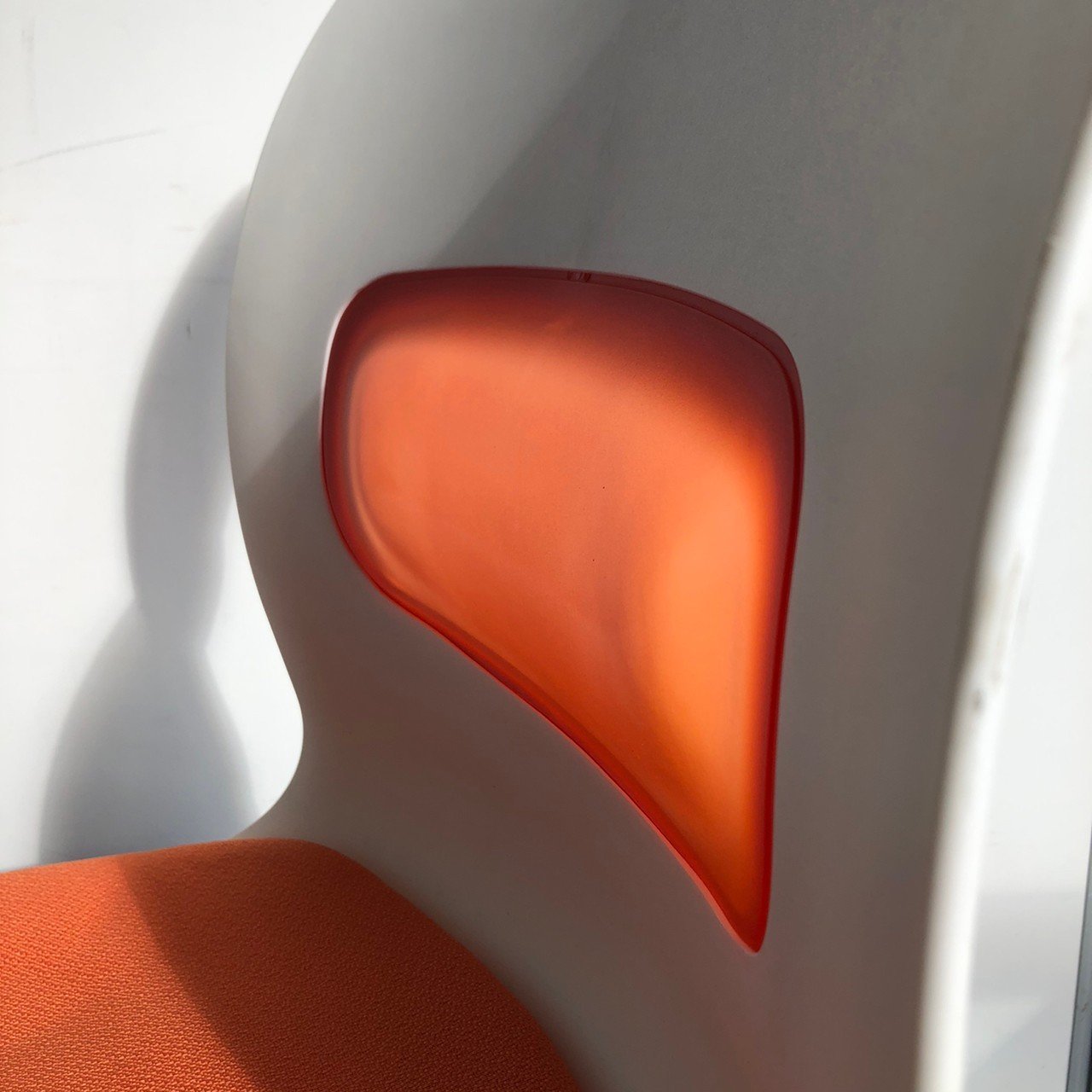 背もたれの中央にエアーが入っているタイプのスタッキングチェアになります。