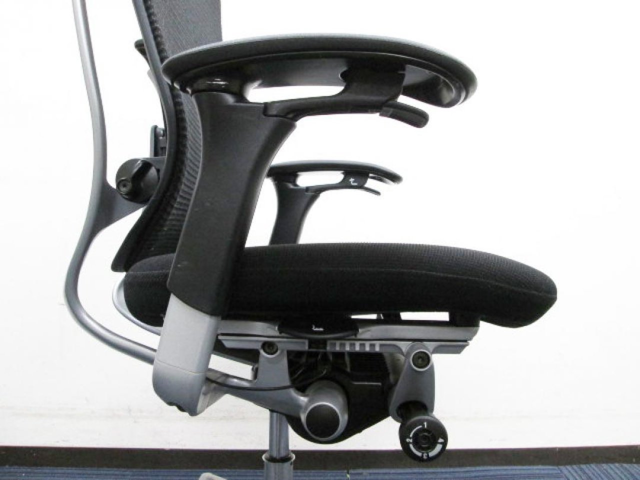 - 座面の前後スライド調整レバーで操作(前後50mm分調整で)できます。(グラデーションサポートメッシュタイプを除く)