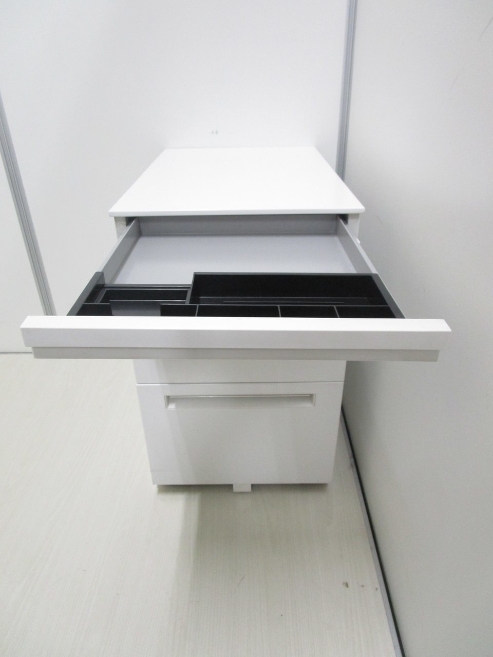 フリーアドレス用ワゴンのため、高さH700のデスクの下にははいりませn。