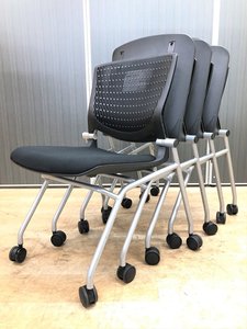 【長時間のミーティングでも疲れにくい!】オカムラ製 グラータ ネスティングチェア【クッション厚め】【折畳可能】【省スペース】