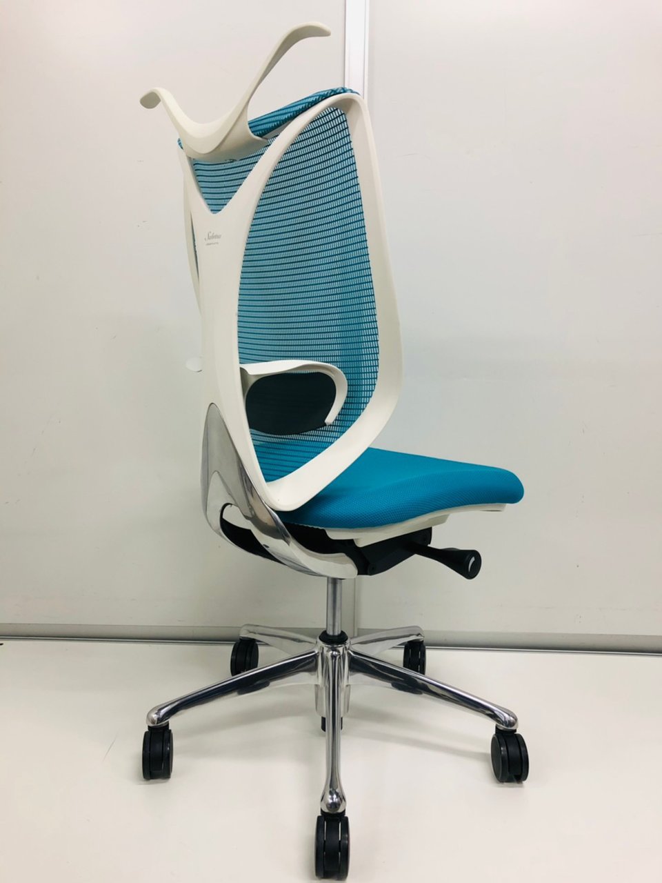 【在庫2点!】オカムラ製 サブリナチェア ブルー×ホワイトカラー 肘無しハイバック【人気商品】【爽やかなブルー】【国内メーカー】