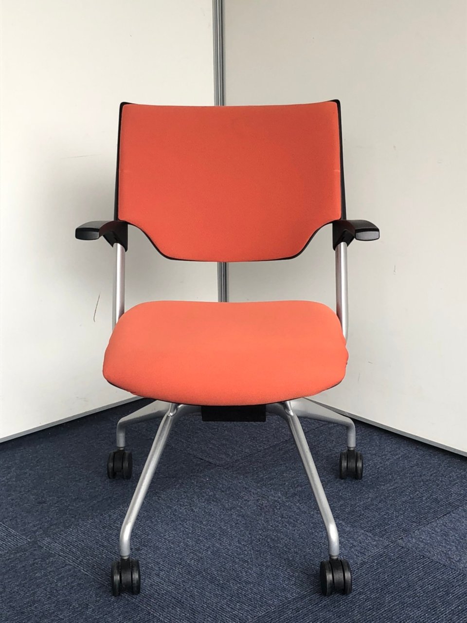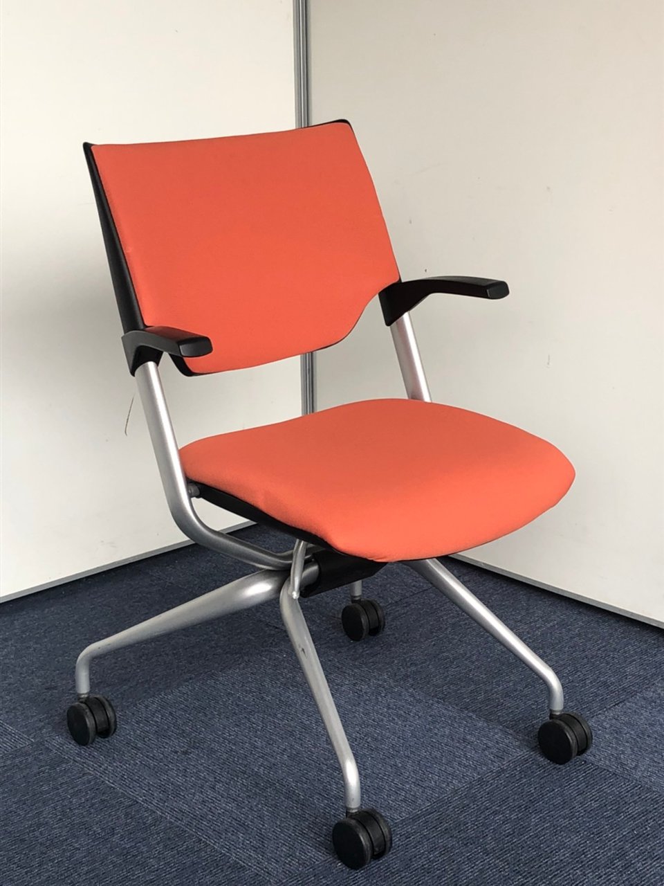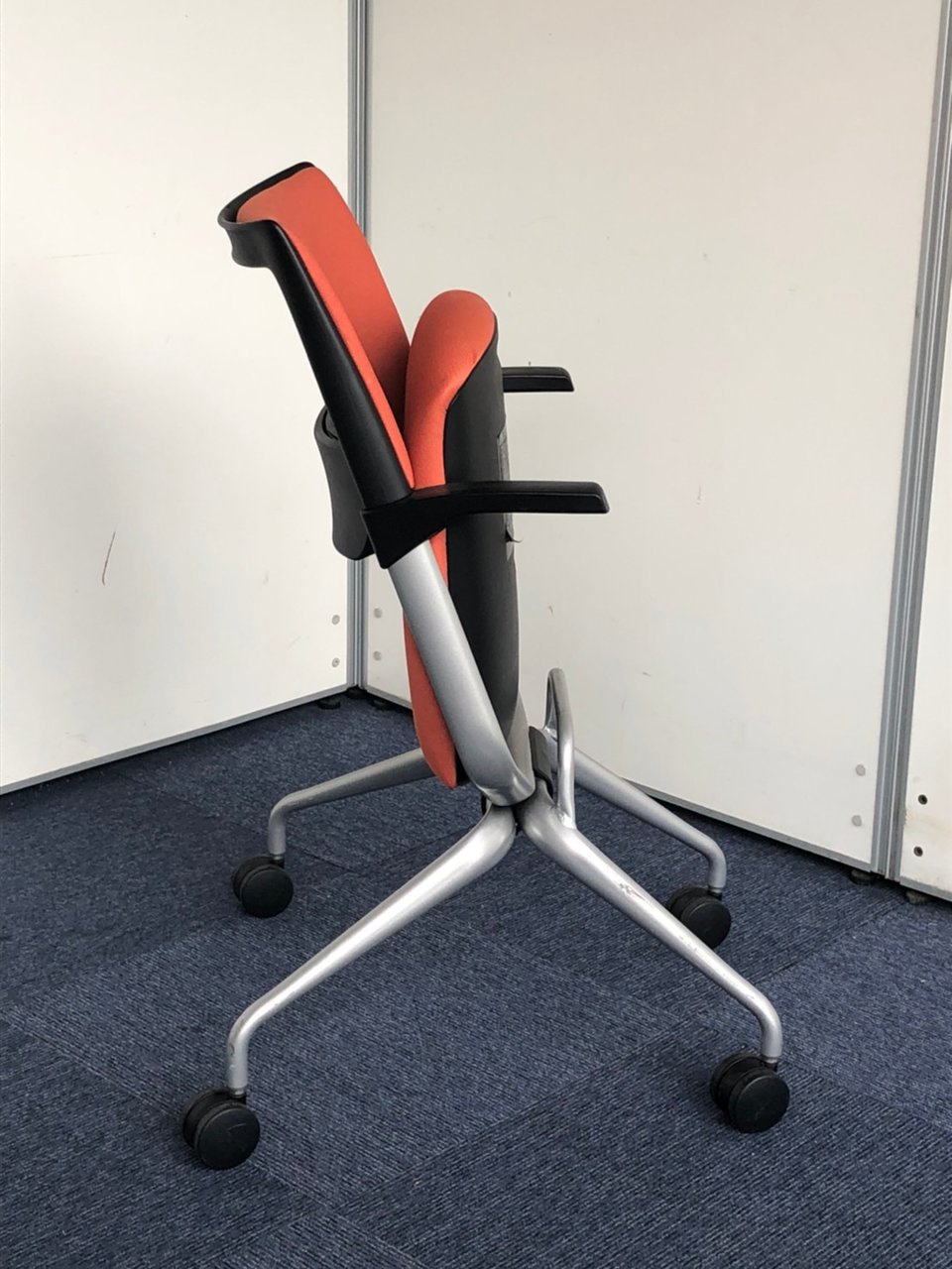 折りたたみチェア。座面のヘタレが少ない良品です。|マンダリンオレンジ|クロスバック|肘付きミーティングチェア|- 神戸・三宮店