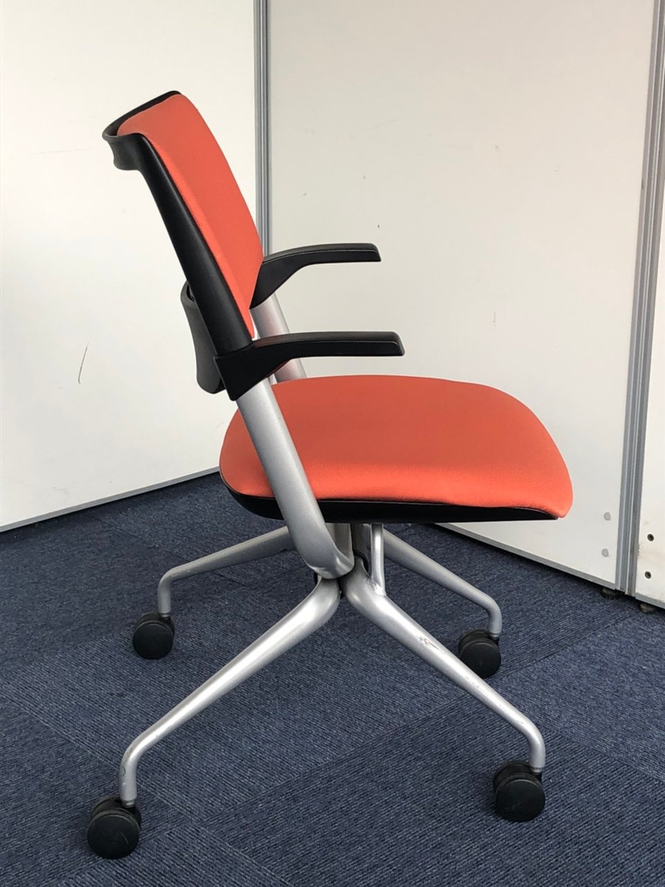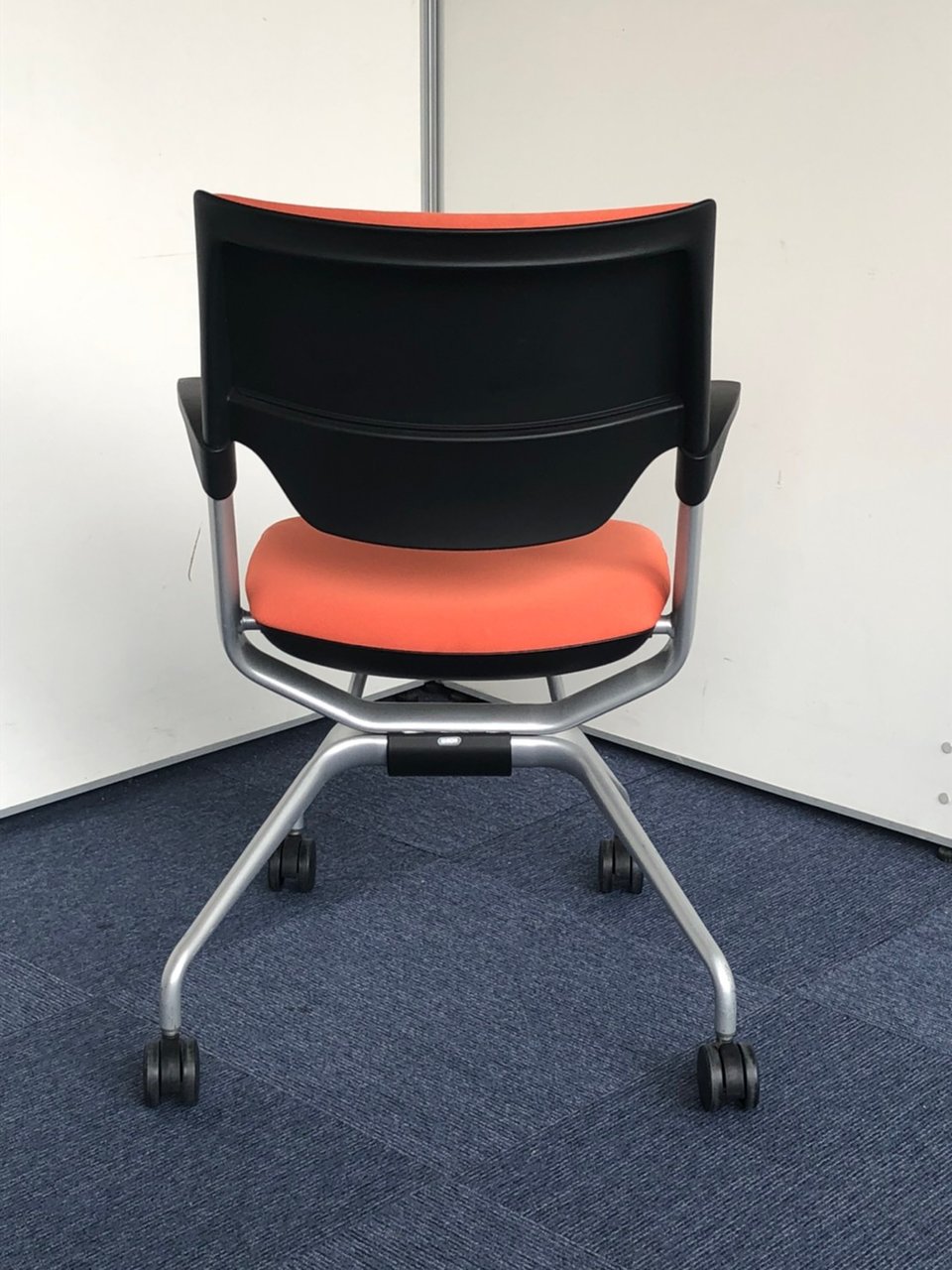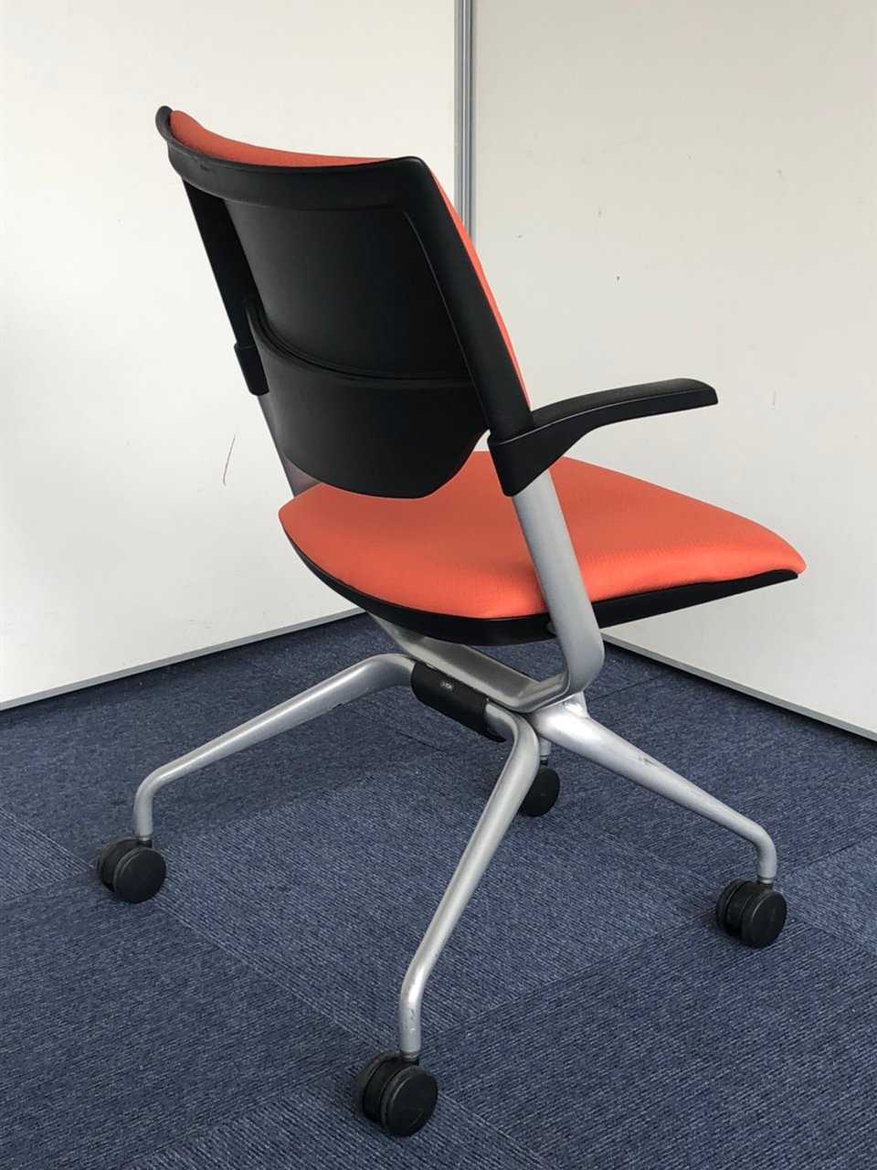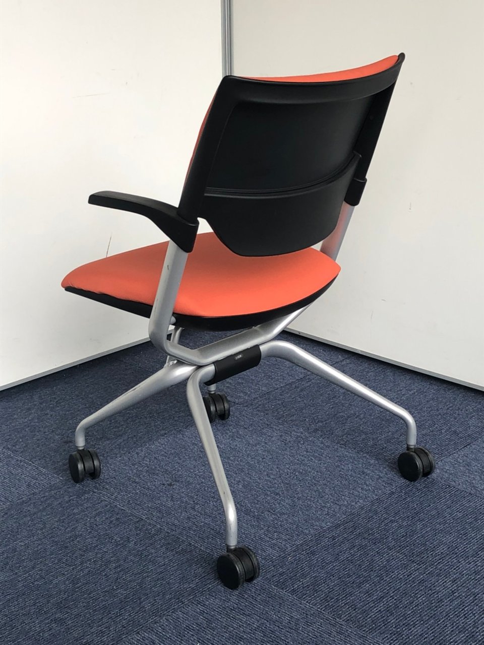 折りたたみチェア。座面のヘタレが少ない良品です。|マンダリンオレンジ|クロスバック|肘付きミーティングチェア|- 神戸・三宮店