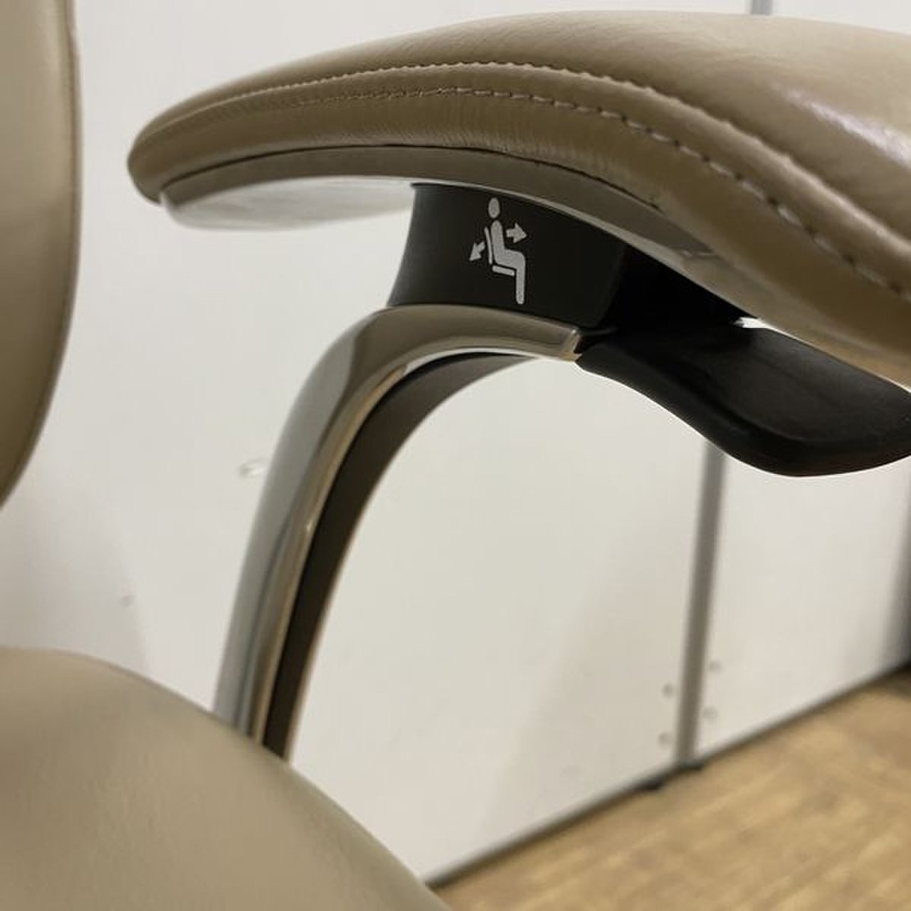 - 肘かけの先端にあるレバーで、リクライニング角度の調整を片手で行うことができます。