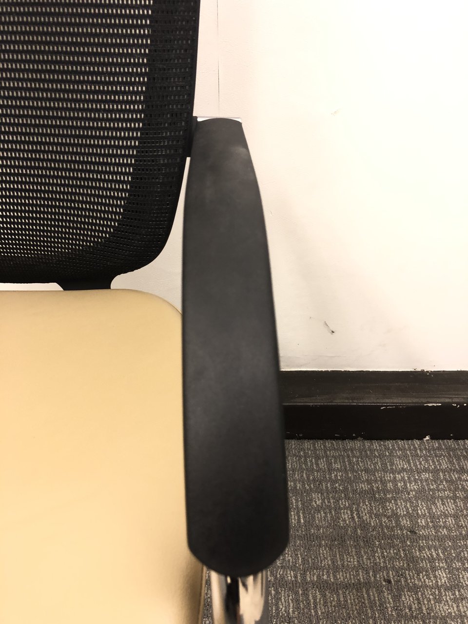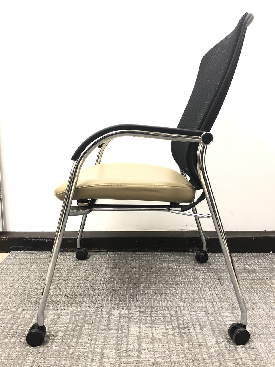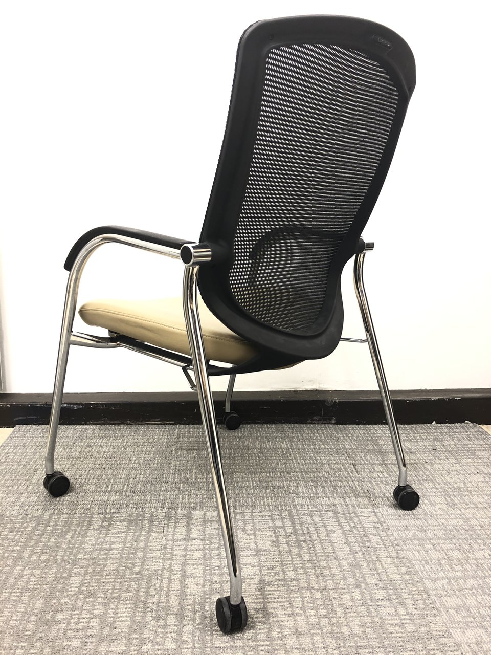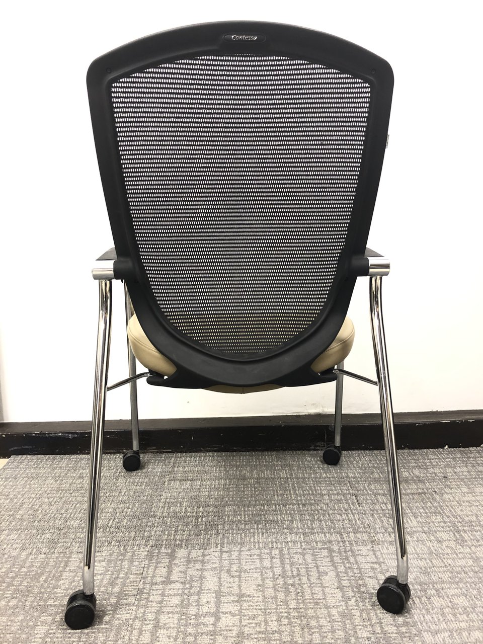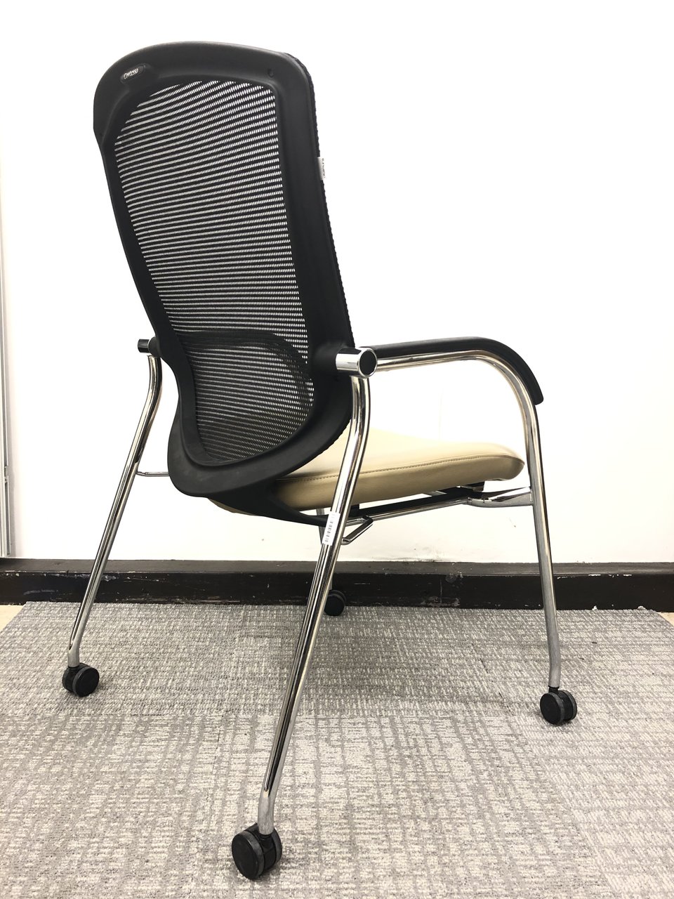 【4脚限定!!】オカムラ|コンテッサ|ベージュカラー|肘付きミーティングチェア|キャスター付き【オフィスチェア店】