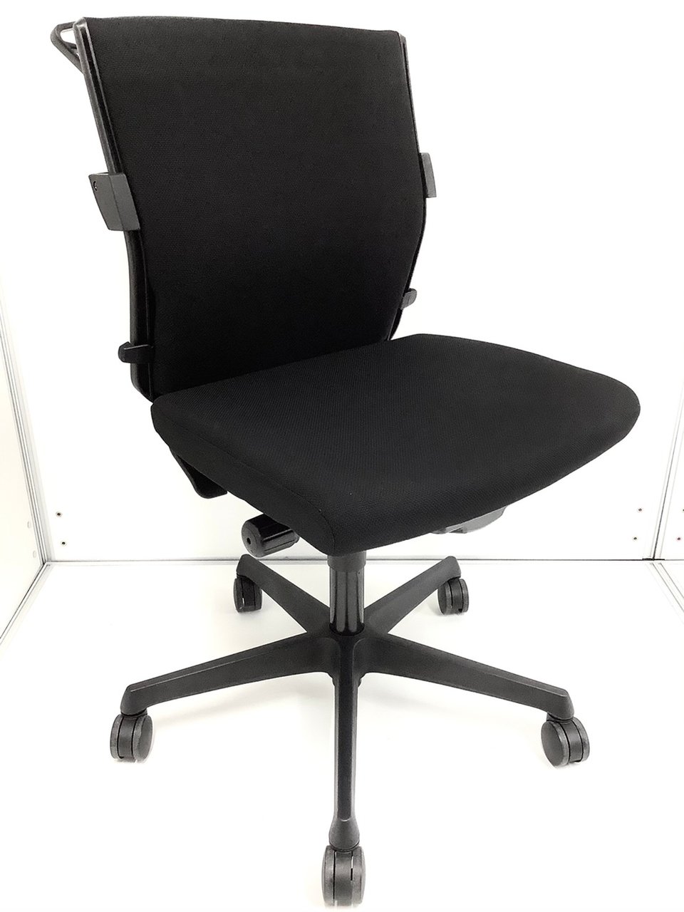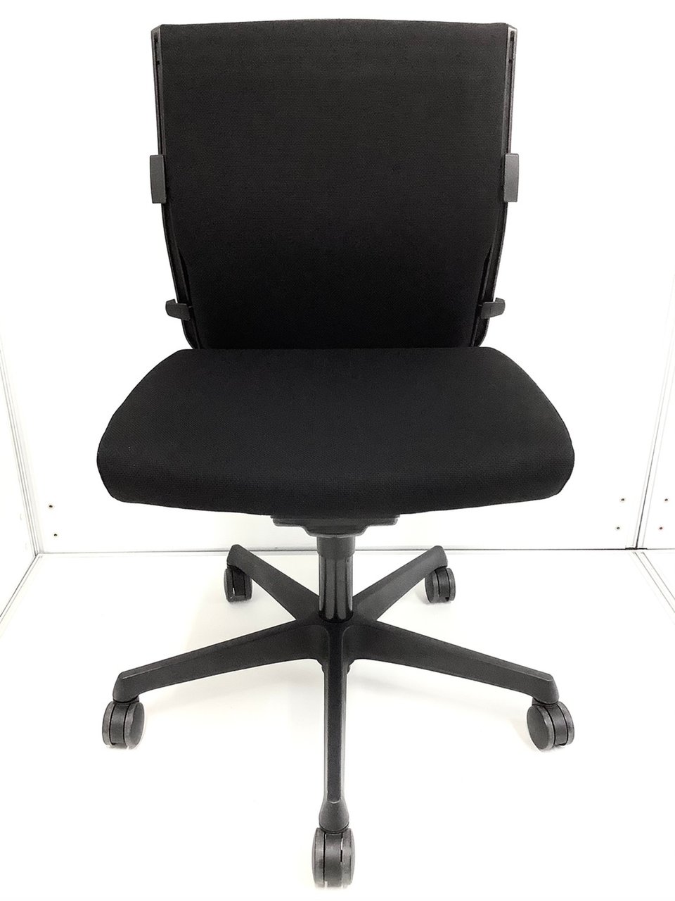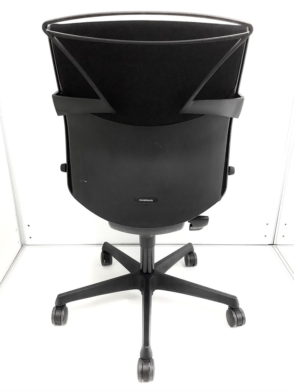 オカムラ製 エスクードシリーズ ブラックカラー 肘無しローバックチェア コートハンガー付き!!