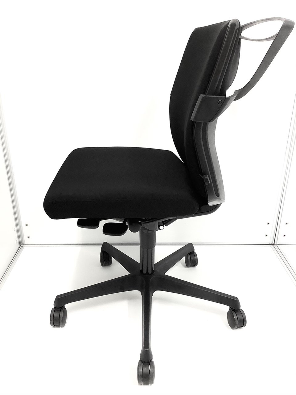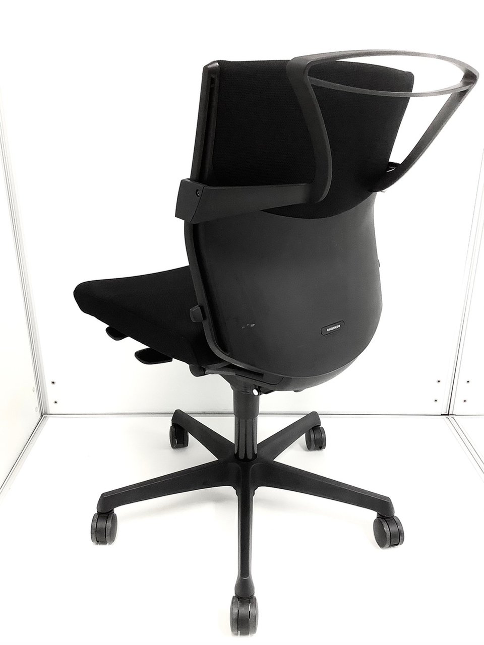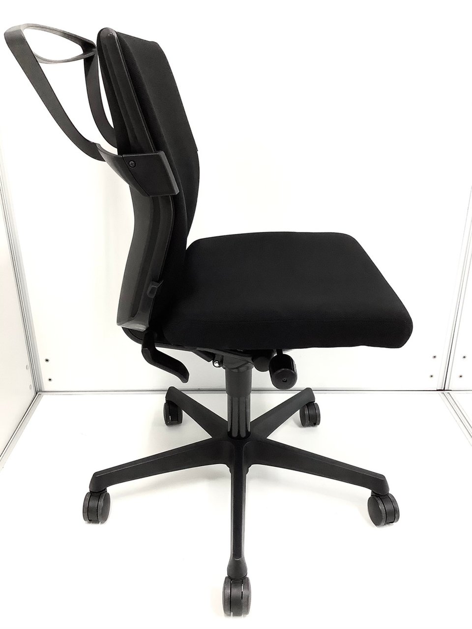 オカムラ製 エスクードシリーズ ブラックカラー 肘無しローバックチェア コートハンガー付き!!