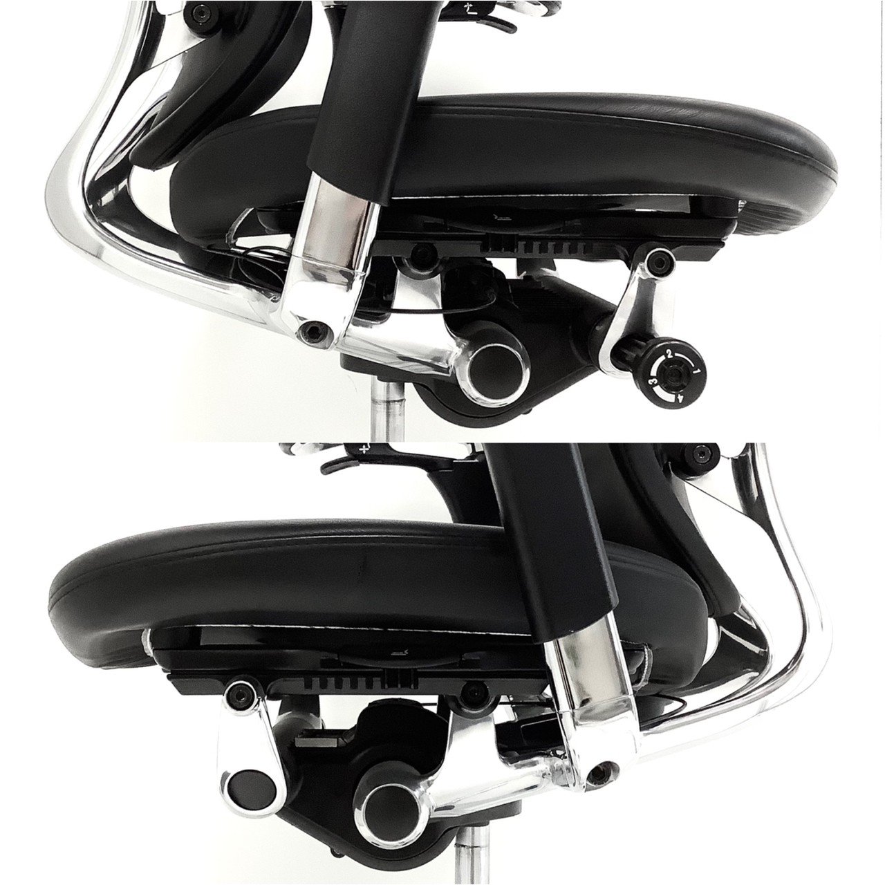 - 座面の前後スライド調整レバーで操作(前後50mm分調整で)できます。(グラデーションサポートメッシュタイプを除く)
