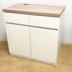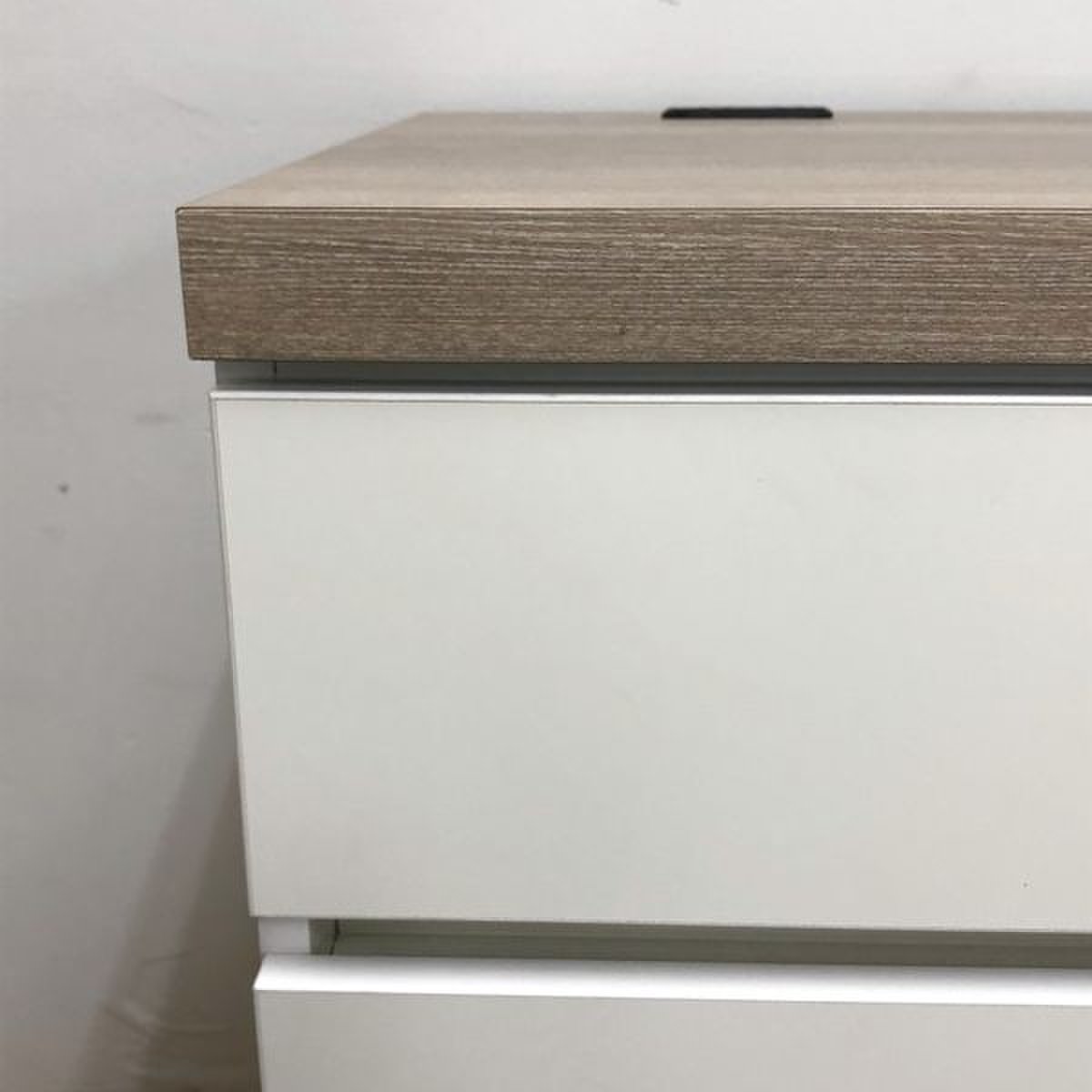 ホワイトの本体にオシャレな木目の天板で、