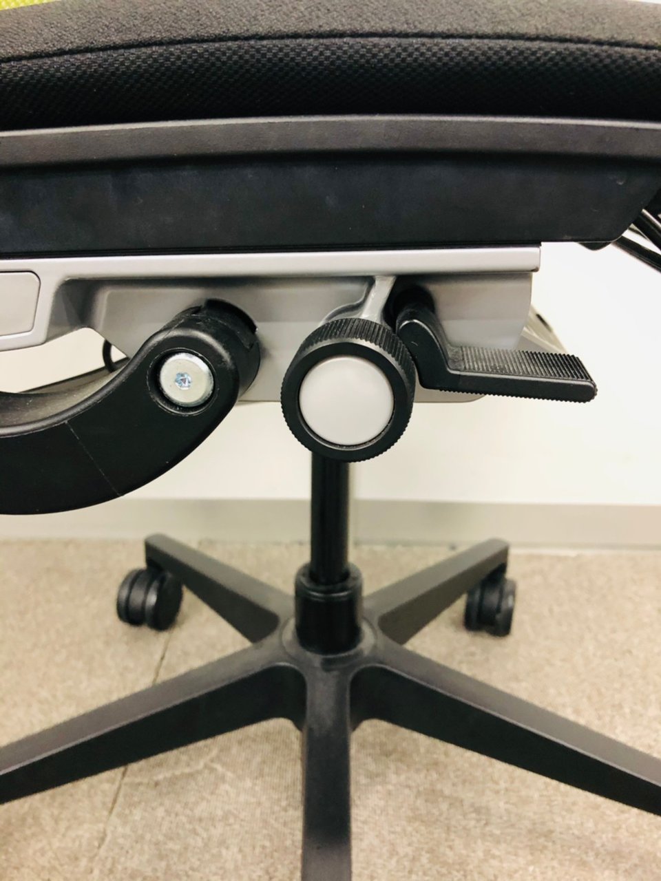 快適な座り心地に不可欠な調節機能である、上下昇降、座面の奥行き調整、リクライニングなどを備えており、操作もわかりやすく好評です。 特に、座面の奥行きは、座面下の左右に通った細いバーで調整でき、座ったままで軽やかに滑るように調整が可能です。 価格面では、新品では高めですが、中古は流通も多く、定価の3割前後の価格で高級チェアの座り心地を手に入れることができます!