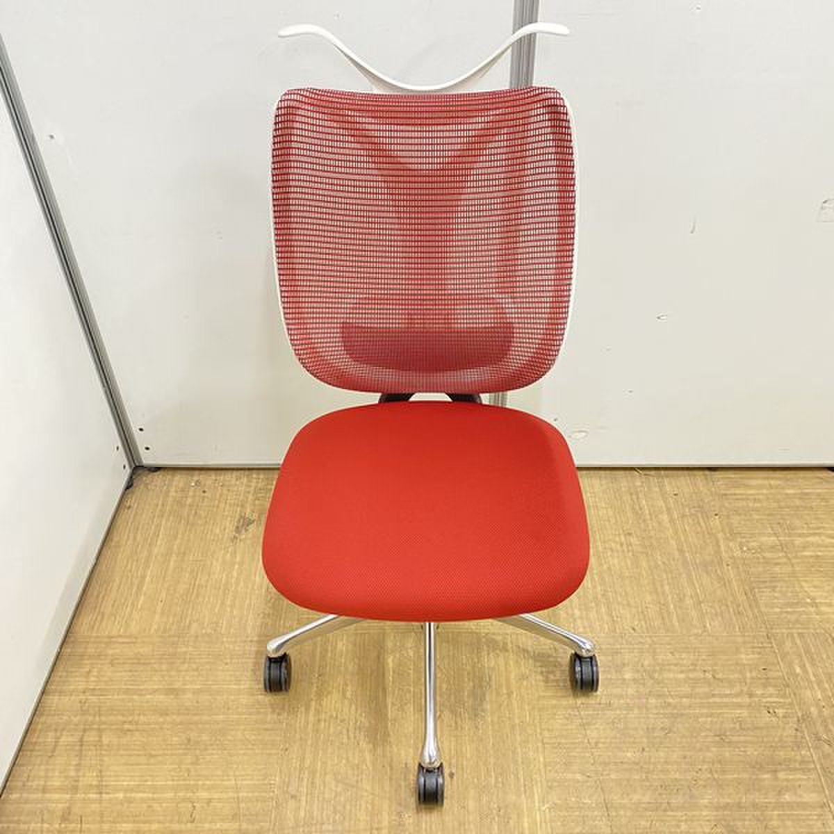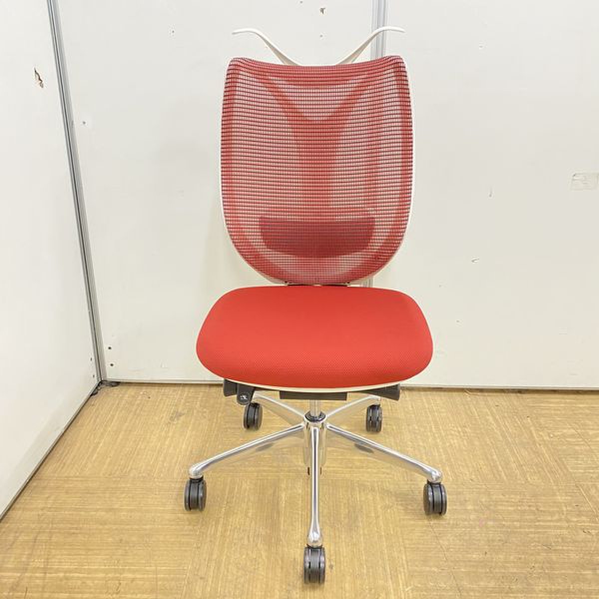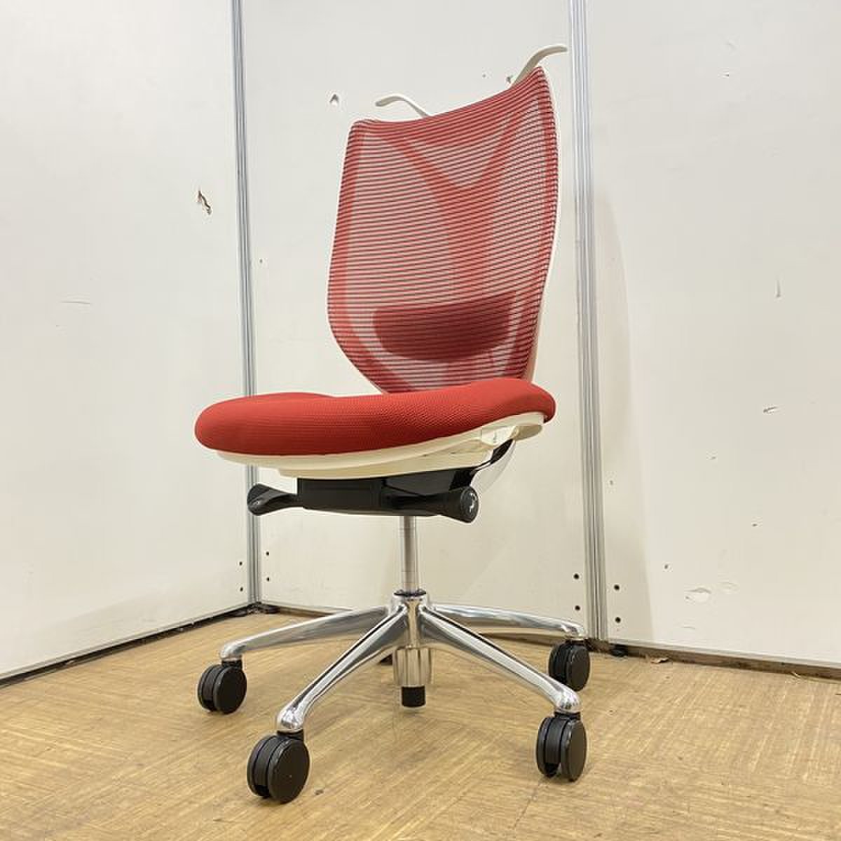 【在庫残り3点】【人気商品】オカムラ製 サブリナ レッド×ホワイトカラー 肘無しハイバックチェア【背面メッシュ】【国内メーカー】