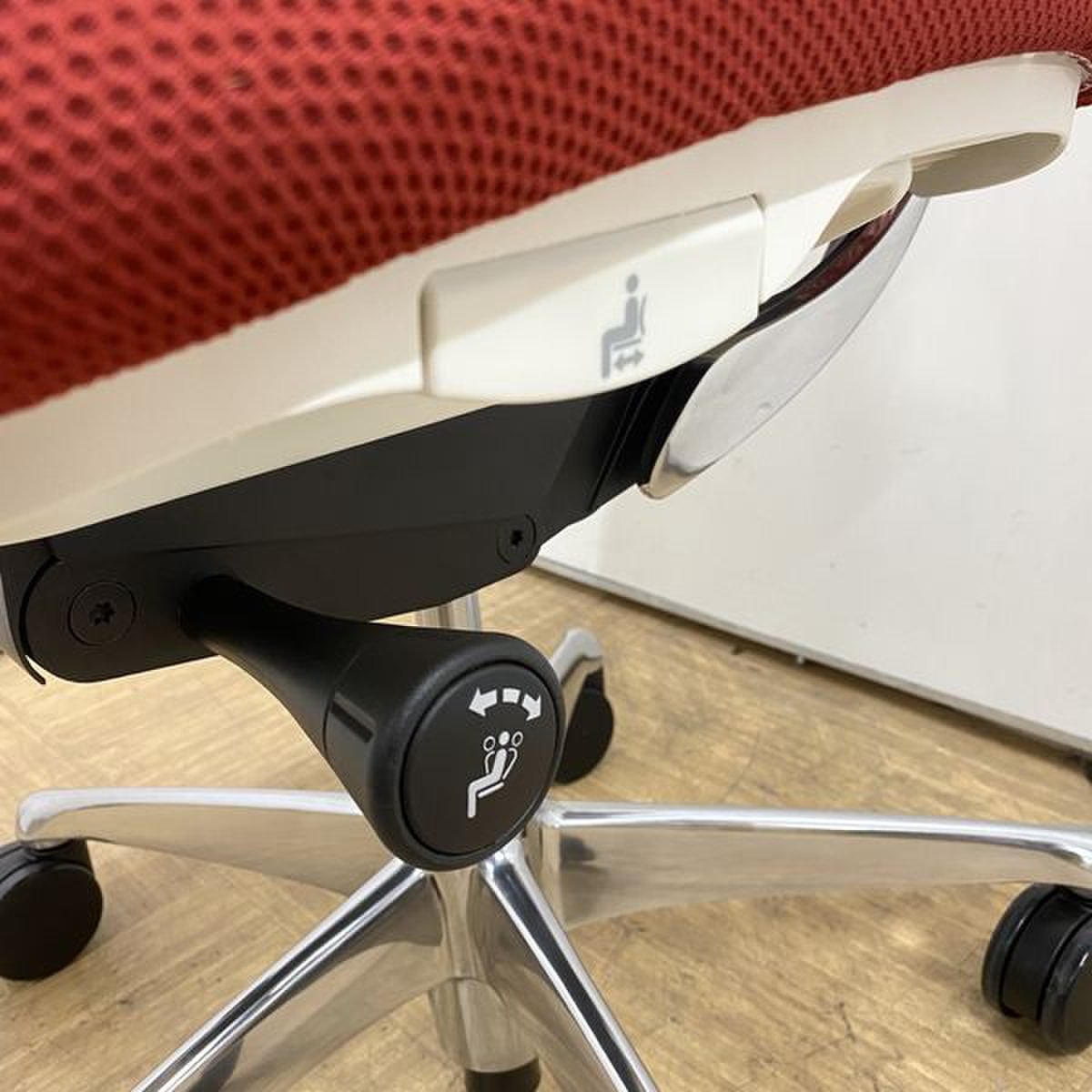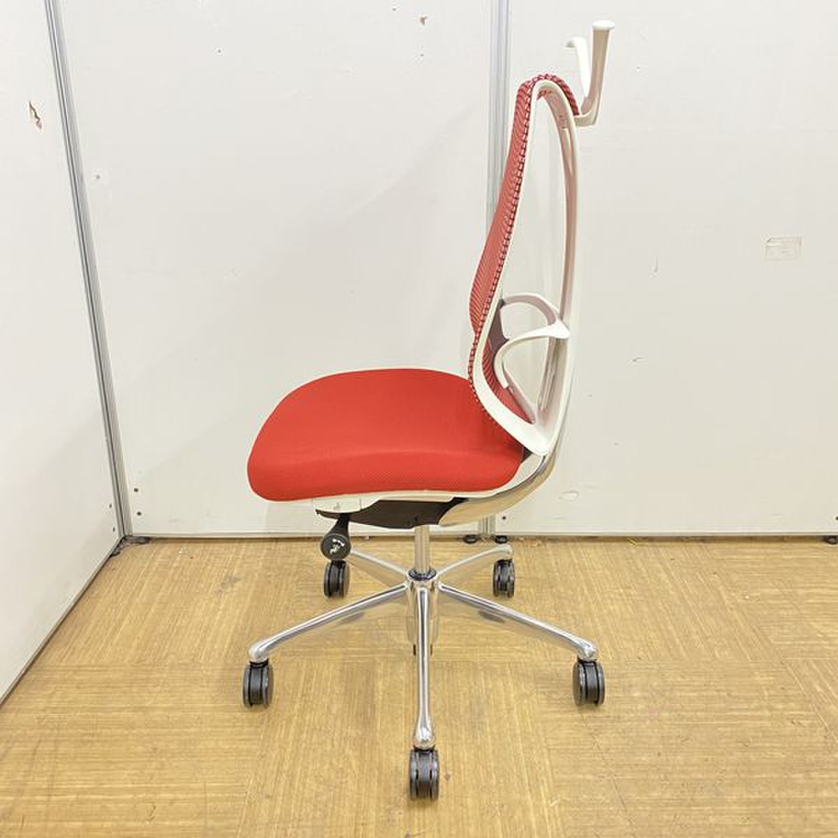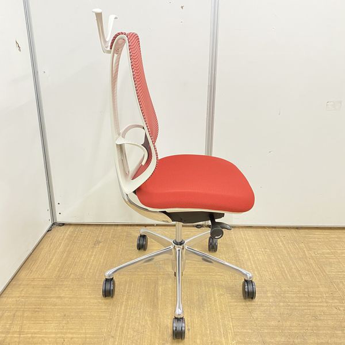 【2016年製】【リモートチェアにも人気!】レッドカラーのオカムラ製サブリナチェア入荷!【コートハンガー/ランバーサポート付き・前傾チルト】
