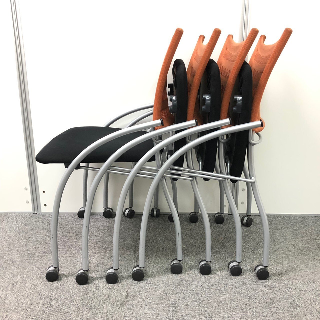 【6脚入荷】綺麗なオレンジ!一流メーカーなのにこの価格!重ねて収納できるので省スペースを実現!- つくば店