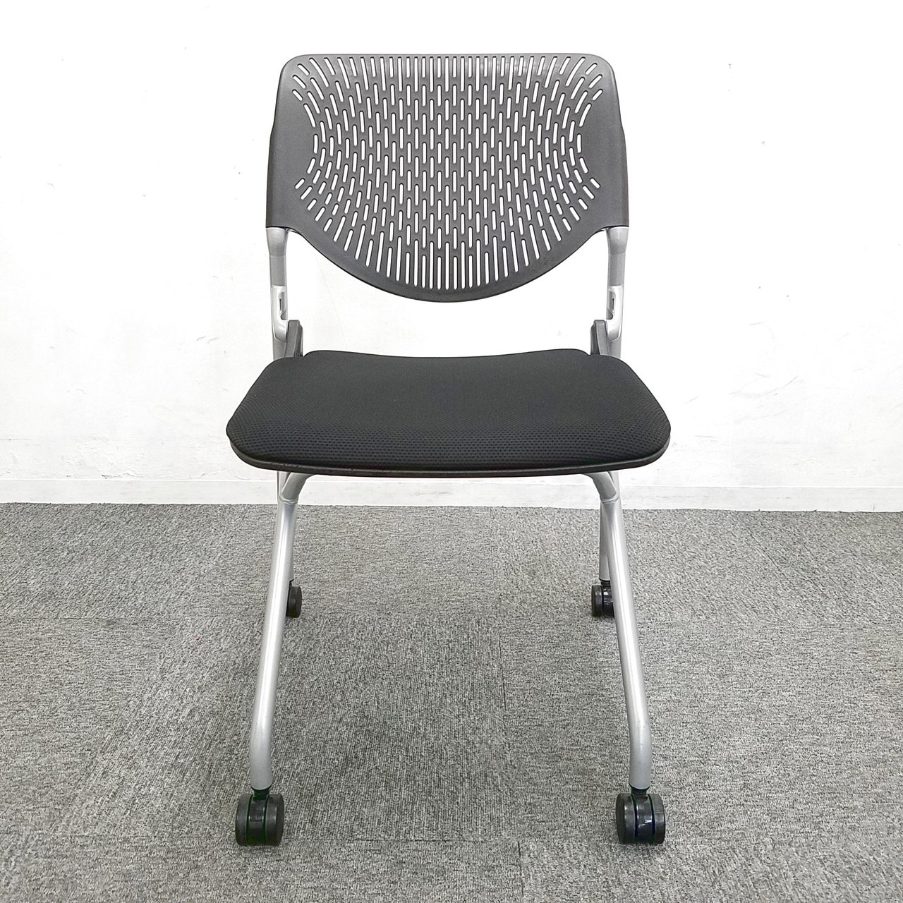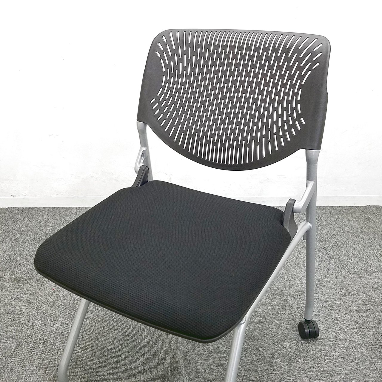 【希少なブラックフレーム】★会議スペース向けチェア★在庫豊富★コンパクトに保管★キャスター付き折り畳み可能