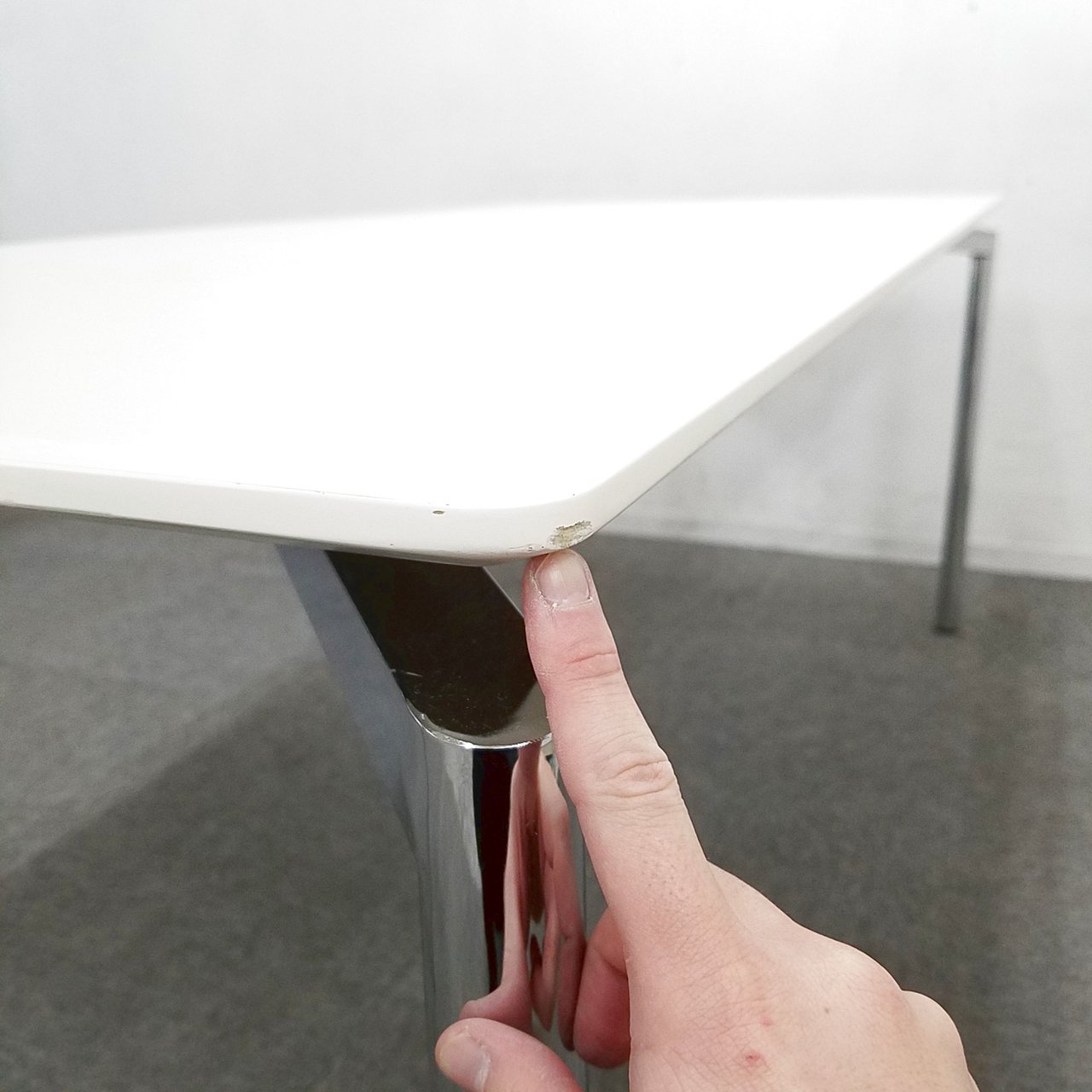 - 壊れている天板歪み、アジャスター無し、キャスター使用不可のようにそのテーブルの本来の効用を果たすための機能に不具合がある。