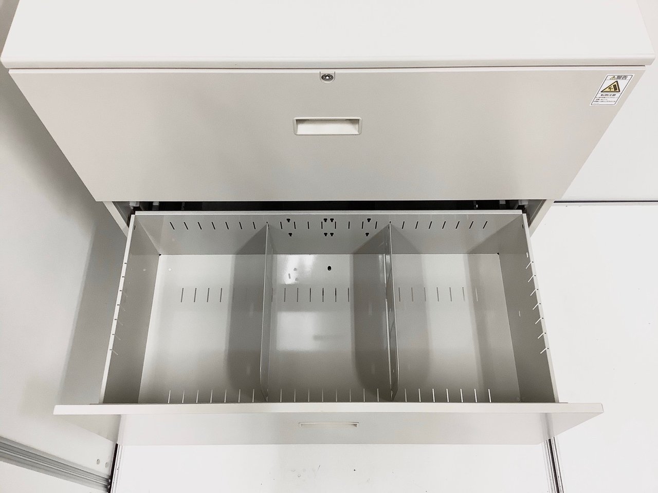 - 一部不具合ありそ引出の開閉不可、施錠不可、棚板無しといったの書庫の本来の効用を果たすための機能以外の一部が使用不可(例、扉、引出の開閉がしづらいなどがある。 )
