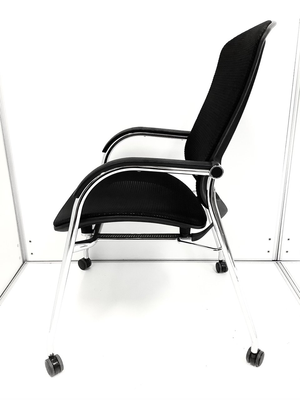 【オフィシャルな空間にふさわしいデザイン!】■オカムラ製 コンテッサシリーズ ゲストチェア キャスター脚 ブラック【おつとめ品】