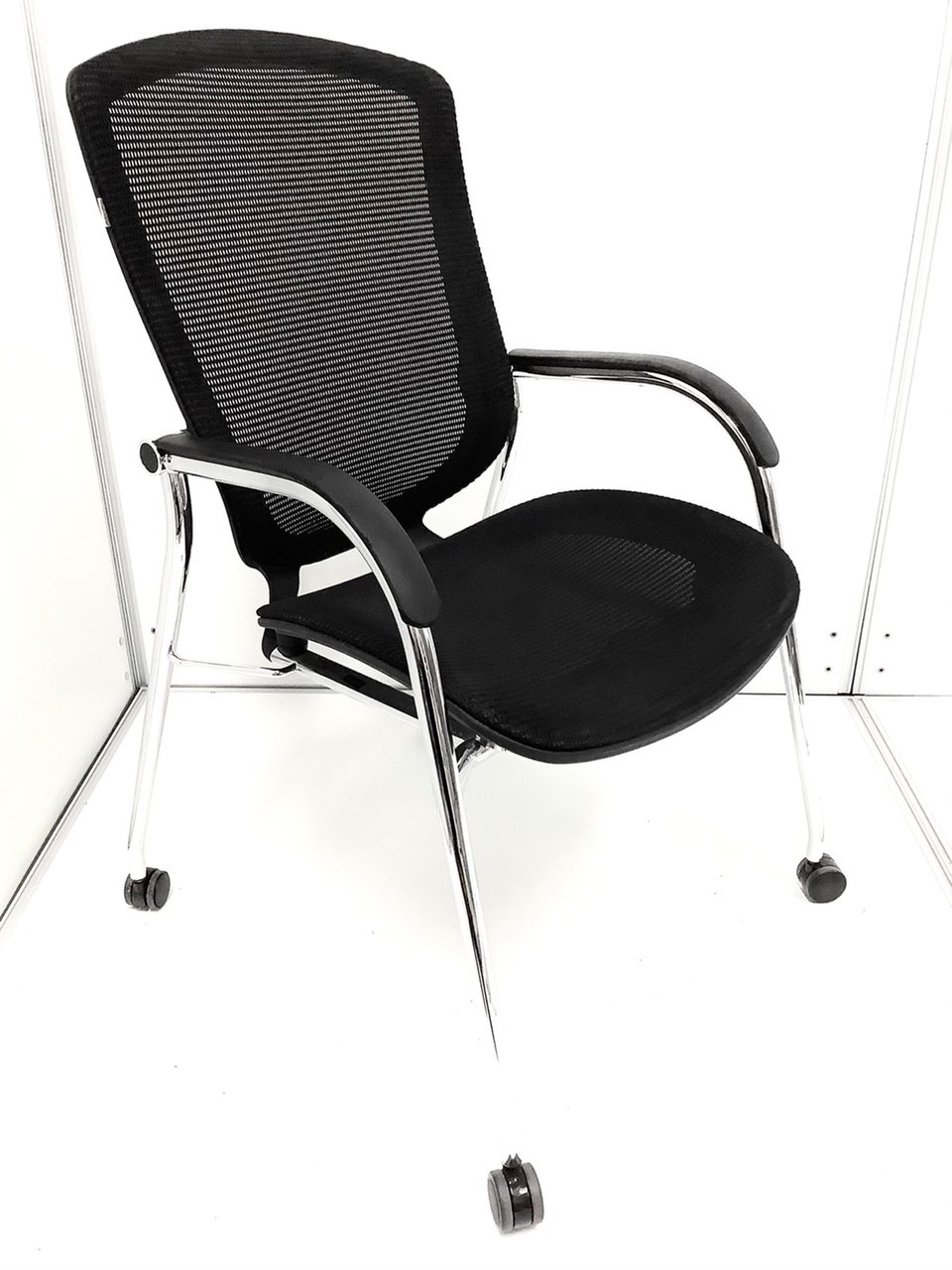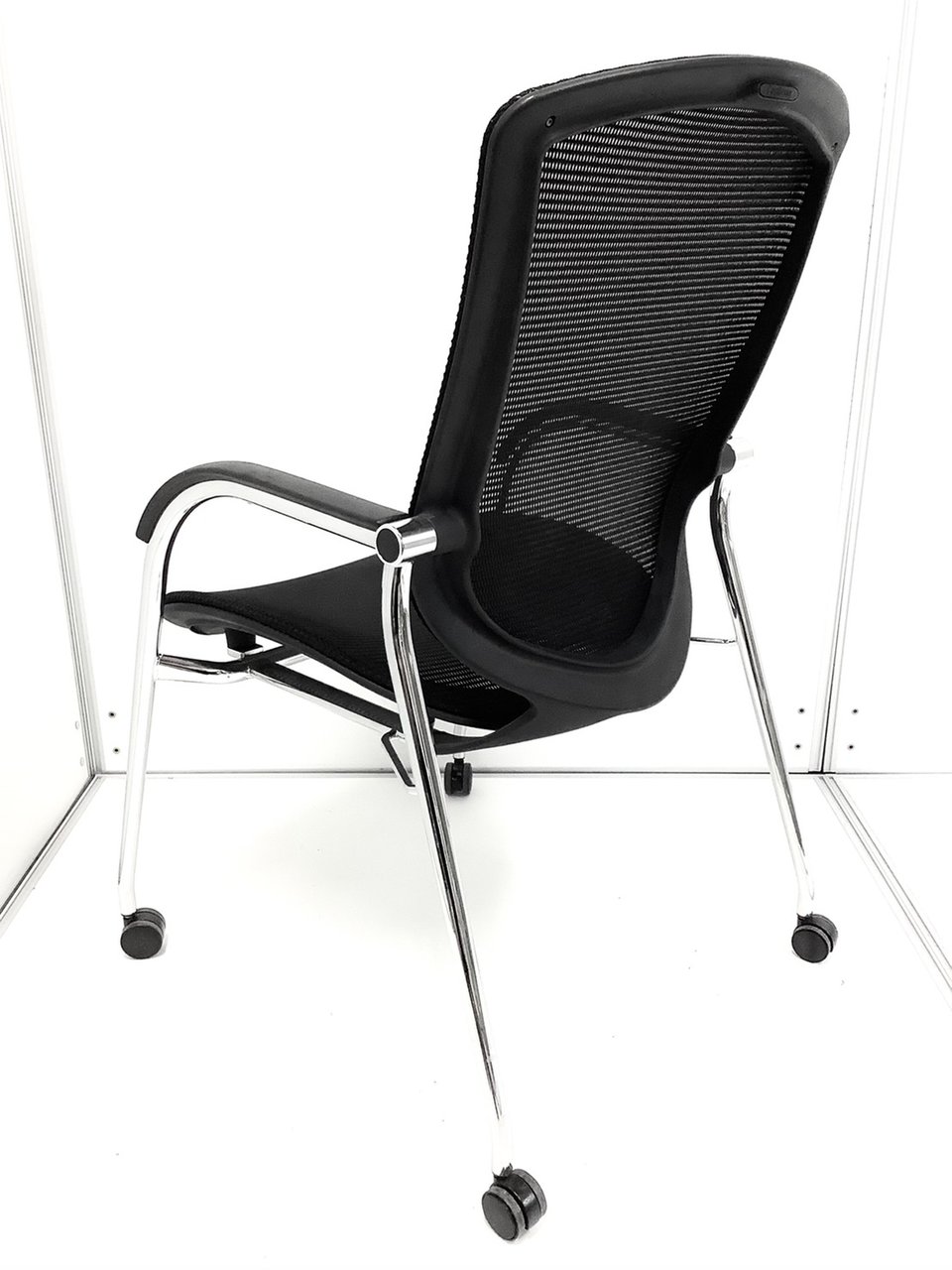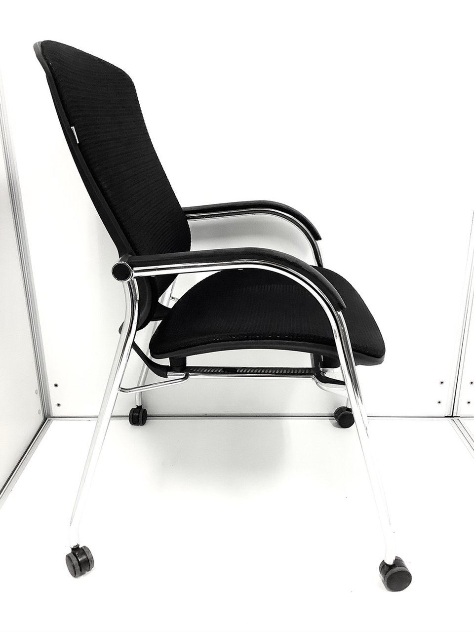【オフィシャルな空間にふさわしいデザイン!】■オカムラ製 コンテッサシリーズ ゲストチェア キャスター脚 ブラック【おつとめ品】