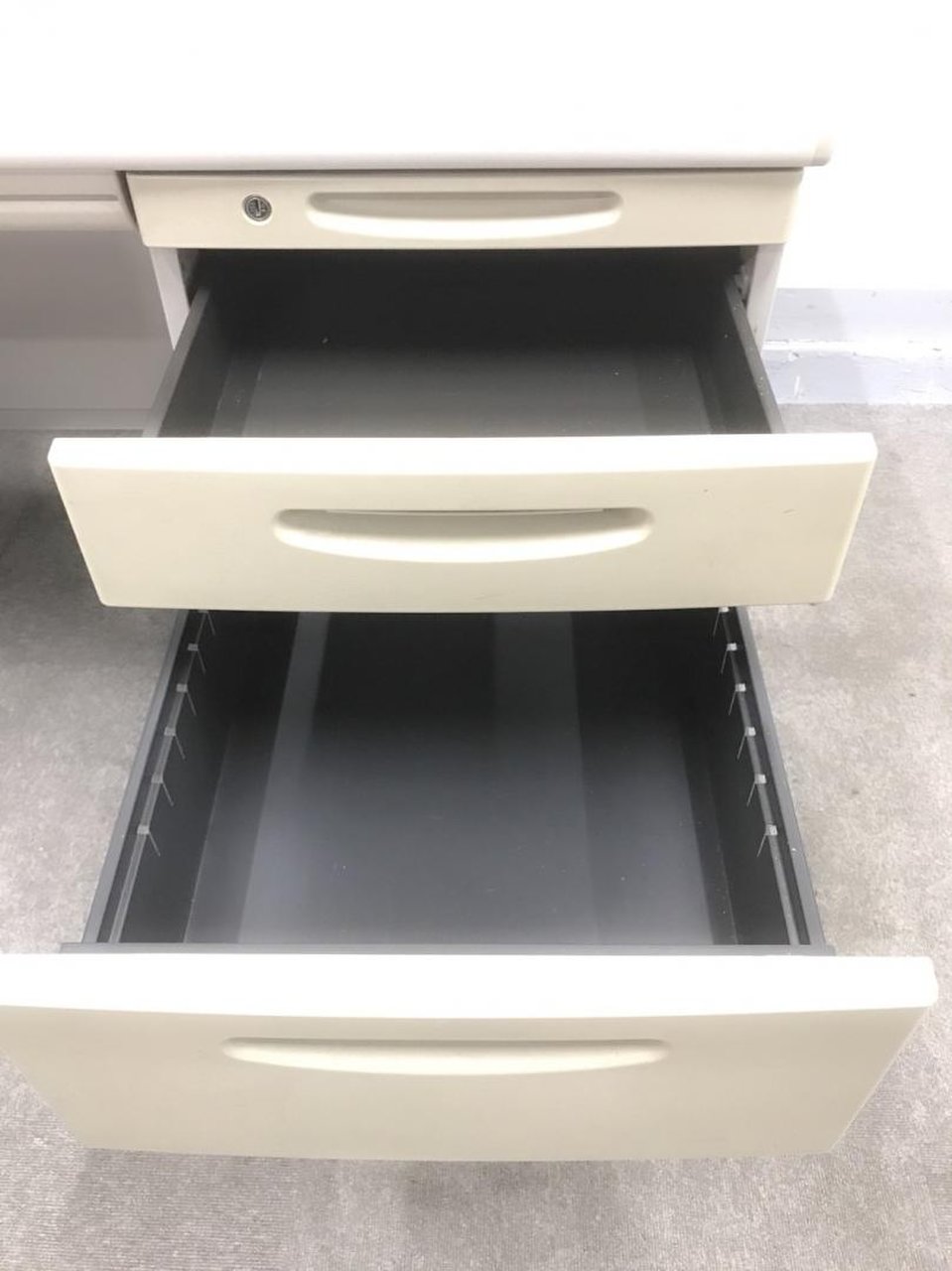 PCを置くスペースを確保可能で、書類や私物は右下の引き出しに収納できます。