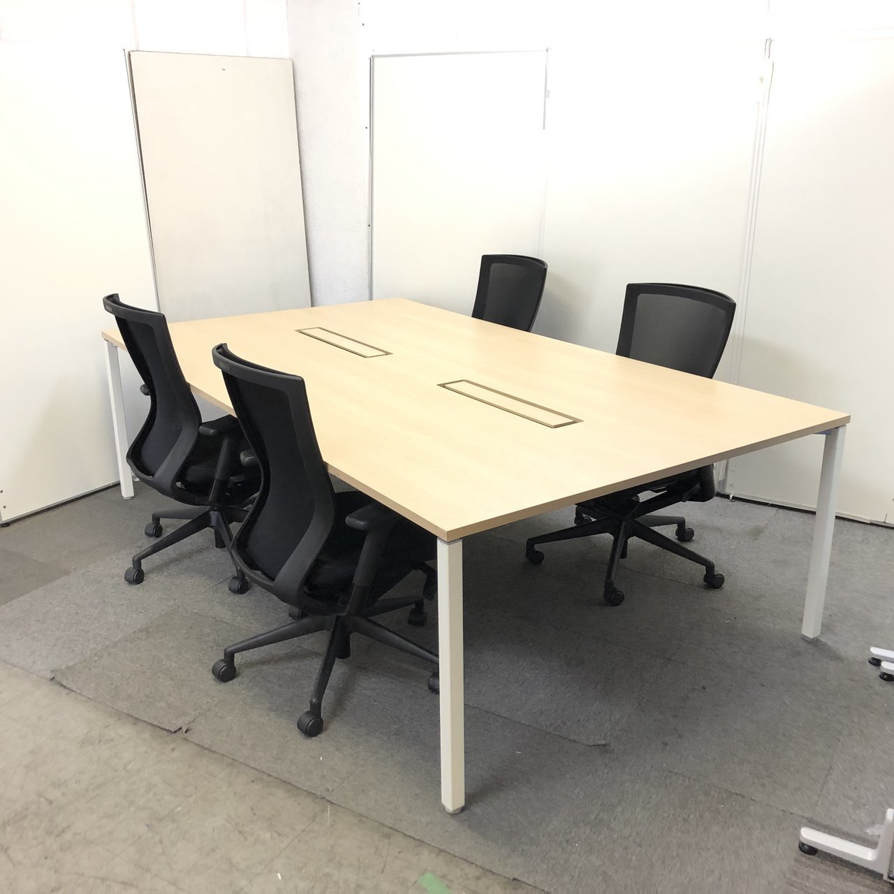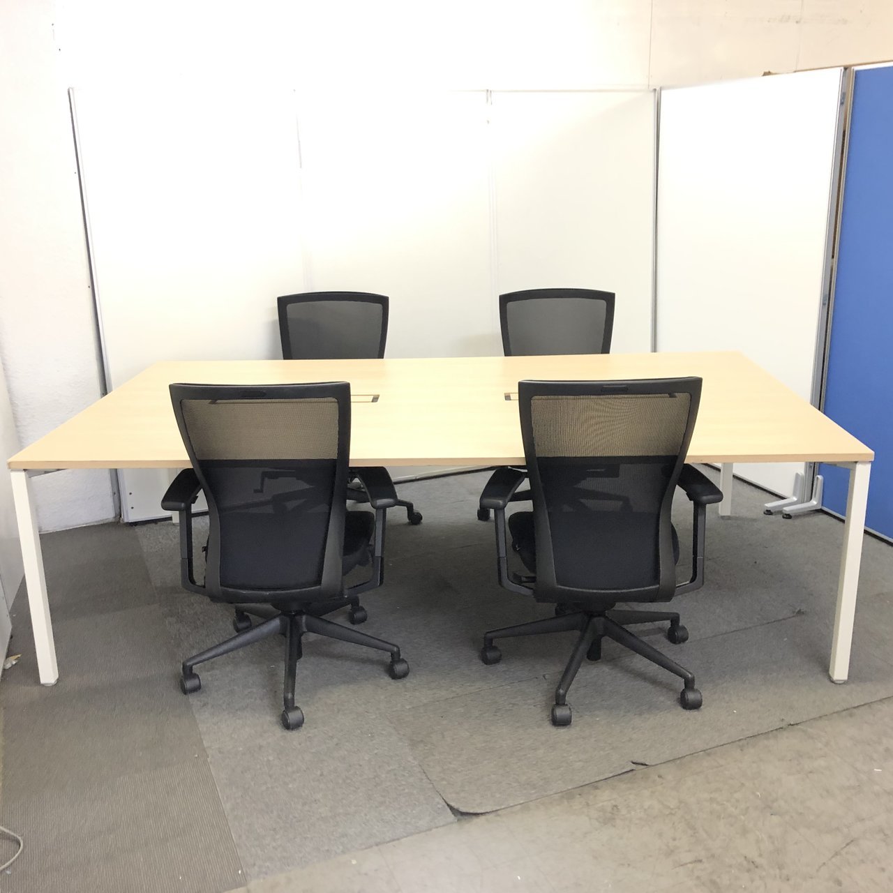 オカムラ製のナチュラルカラーのフリーアドレスデスク+ファシスのT500シリーズ4脚セット!