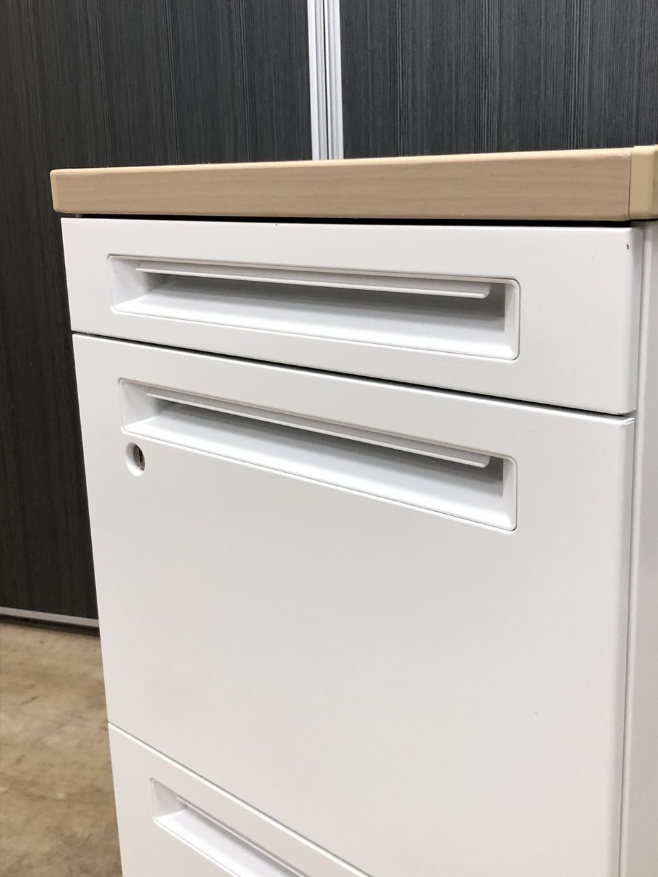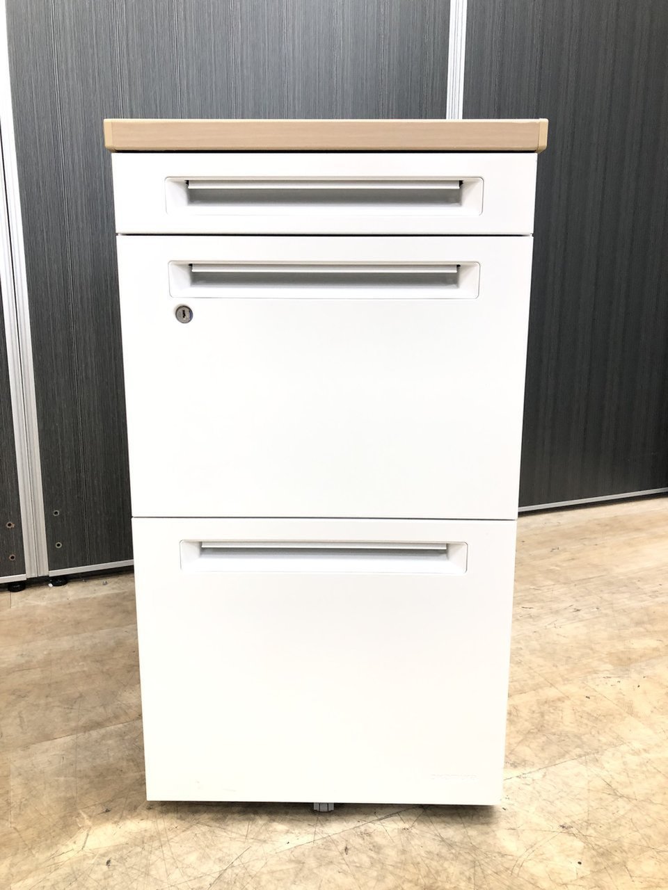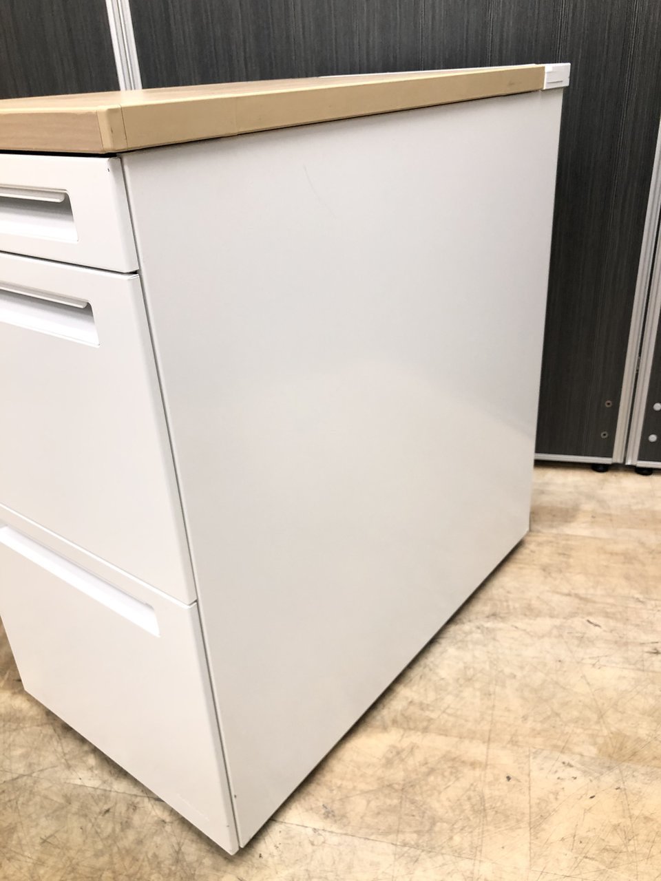 - 一部不具合ありその脇机・ワゴンの本来の効用を果たすための機能以外の一部が使用不可な状態。(例、引出が開閉しづらい、 キャスターロック機能使用不可、ラッチ不良 等がある。)
