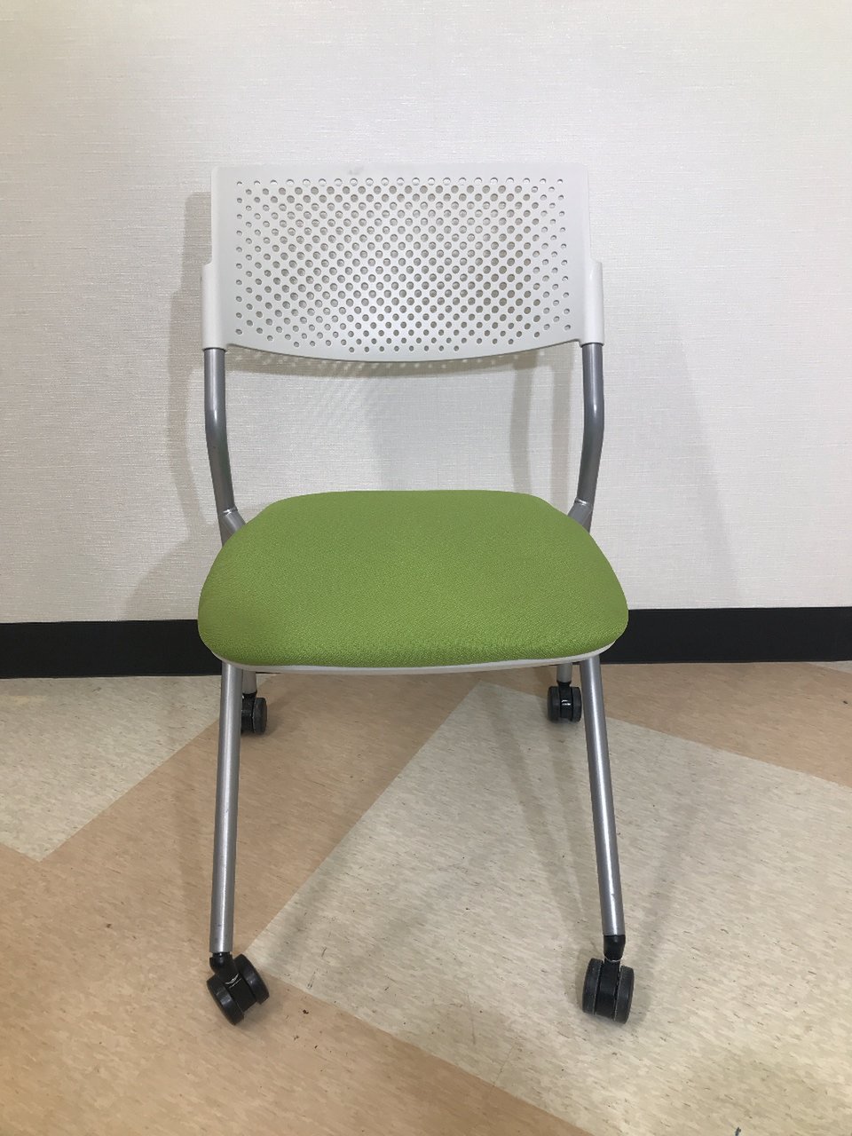 【12脚入荷!】|ネスティングチェア|モスグリーン|背ホワイト|ミーティングチェア|会議室や講習室にオススメ!【関西在庫数ナンバーワン・尼崎店】- 豊中・尼崎店
