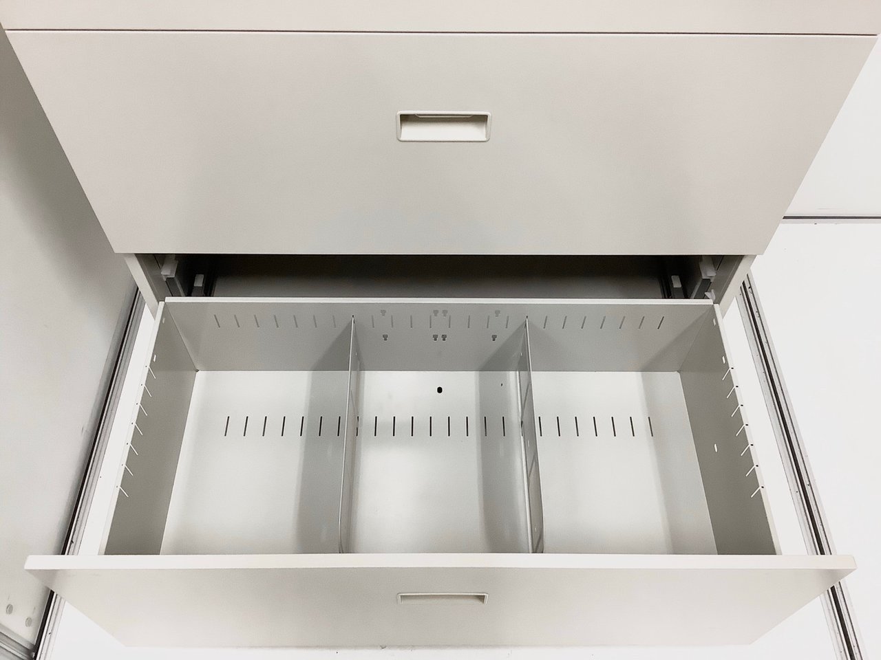 - 一部不具合ありそ引出の開閉不可、施錠不可、棚板無しといったの書庫の本来の効用を果たすための機能以外の一部が使用不可(例、扉、引出の開閉がしづらいなどがある。 )
