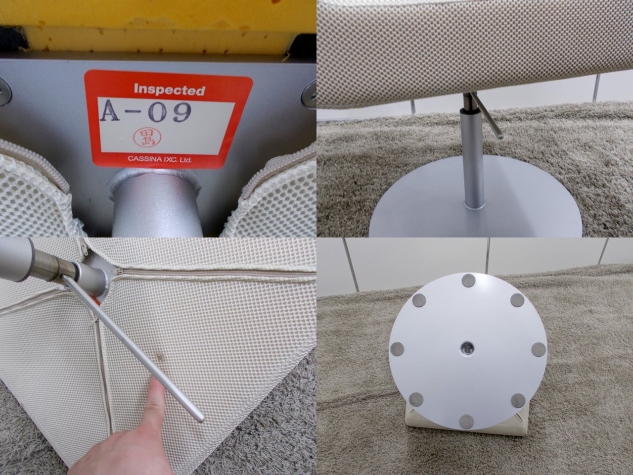 - 目立つ箇所あり傷・破れ・ほつれ・へたり・しわが多数または深い傷・破れ・ほつれ・へたり・しわが一部ある。※座面・背もたれ、シェル、脚部等にある。