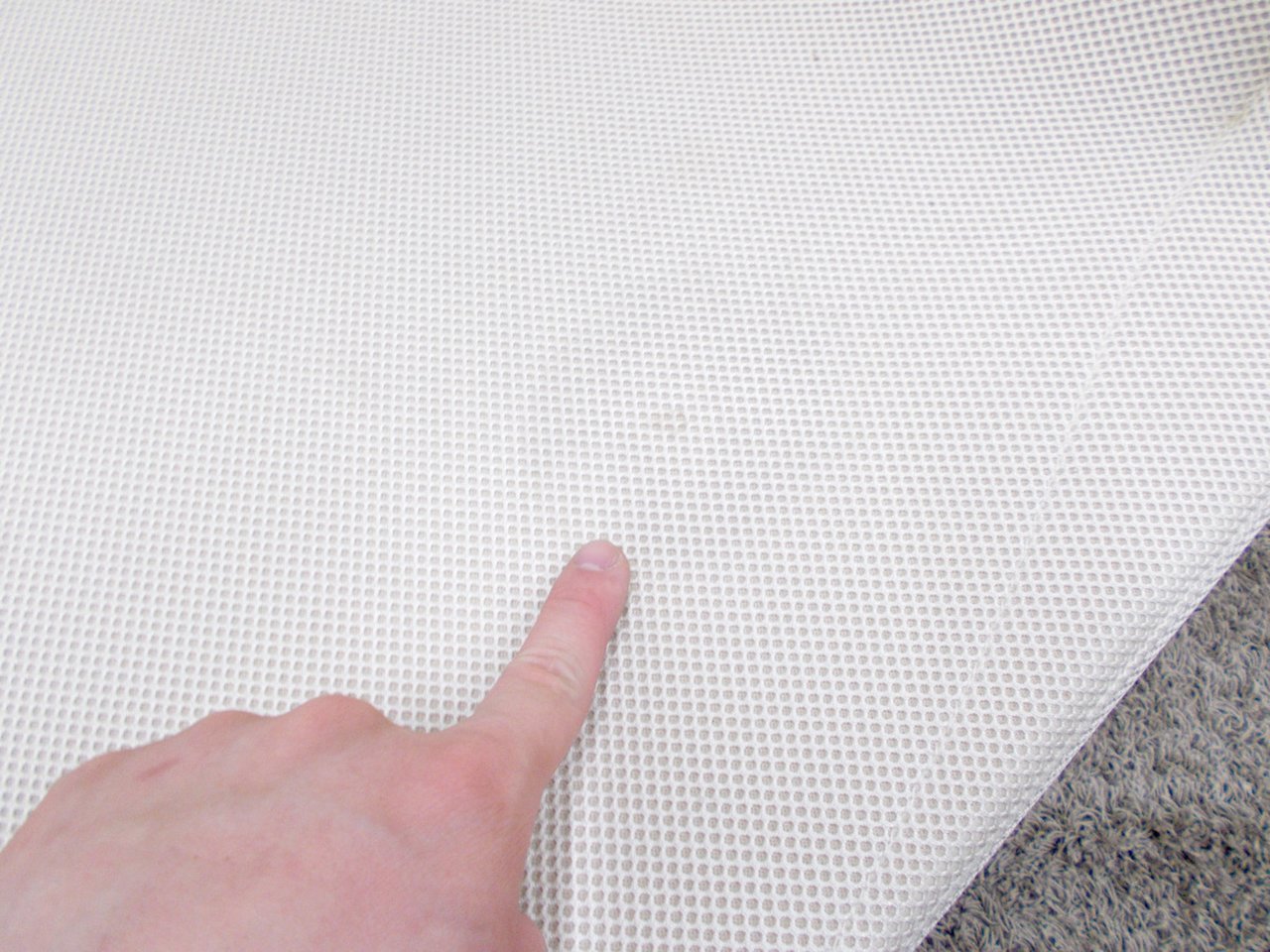- あり黄ばみ・変色が広い範囲にうっすらある、または濃い黄ばみ・変色が一部ある。(例、座面・背もたれ、脚部等にある。)