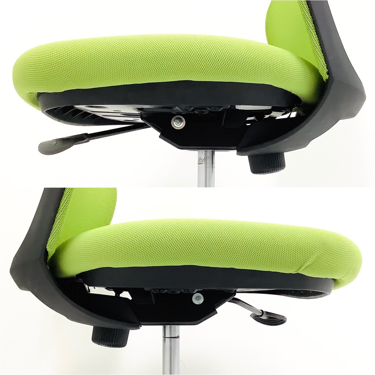 さらに、座面が他のオフィスチェアと比べ30〜50mmほど低くなっており、一番下まで下げると床からの高さは385mmになり、小柄な方にはとても座りやすいとご好評を頂いております。一方で、座面部分がコンパクトなので、大柄な男性は少々窮屈に感じることがあるかもしれません。(170cm標準体型の私には快適です!)"