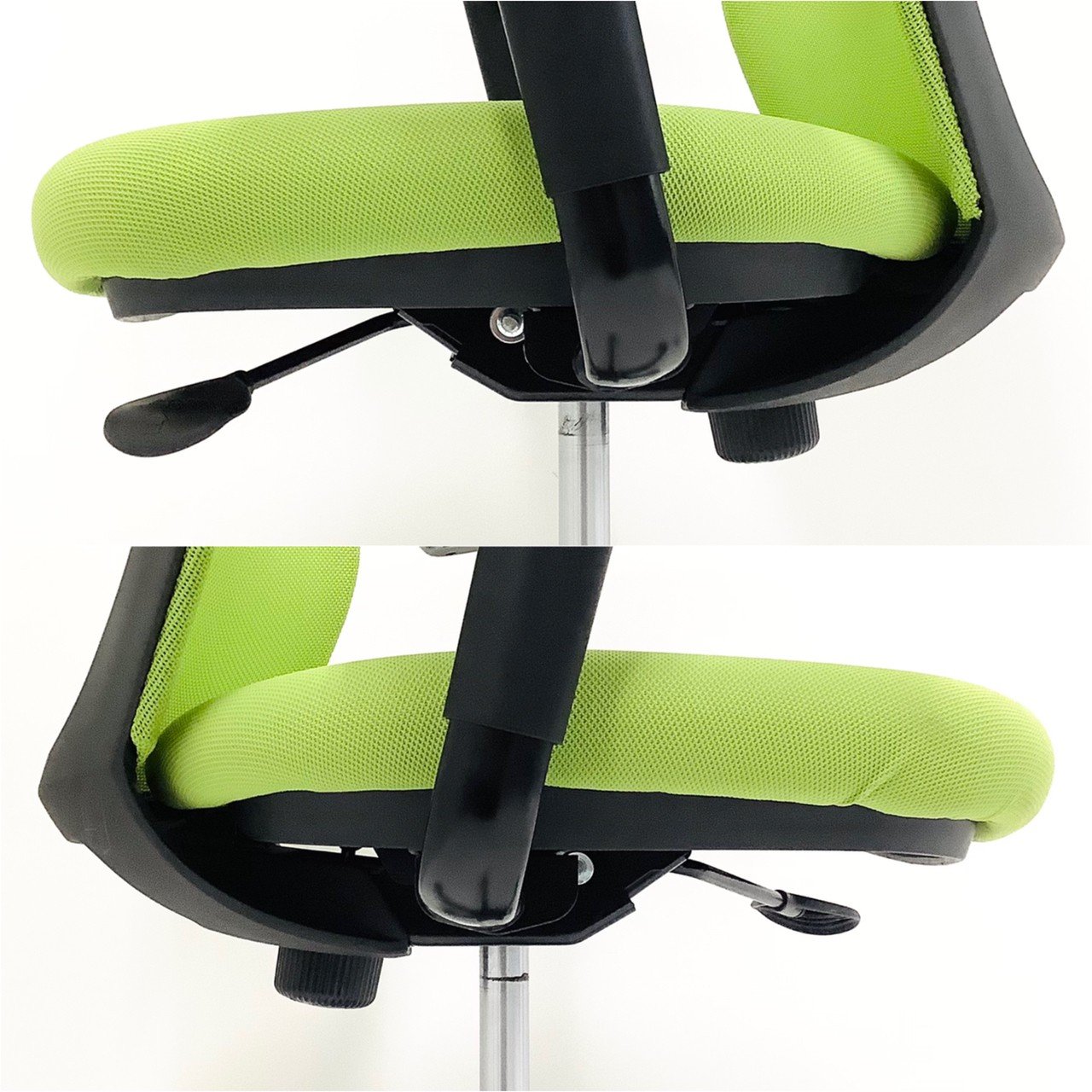 高級チェアとの大きな違いを挙げると、腰を支えるランバーサポートがない、座面の奥行き調節ができない点でしょうか。これらの機能は、パソコンなどを使った長時間のデスクワークをされていて、腰痛などの不安を抱えている方にとっては外すことのできないものですが、そうでない方には必ずしも必要のない機能だと思います。